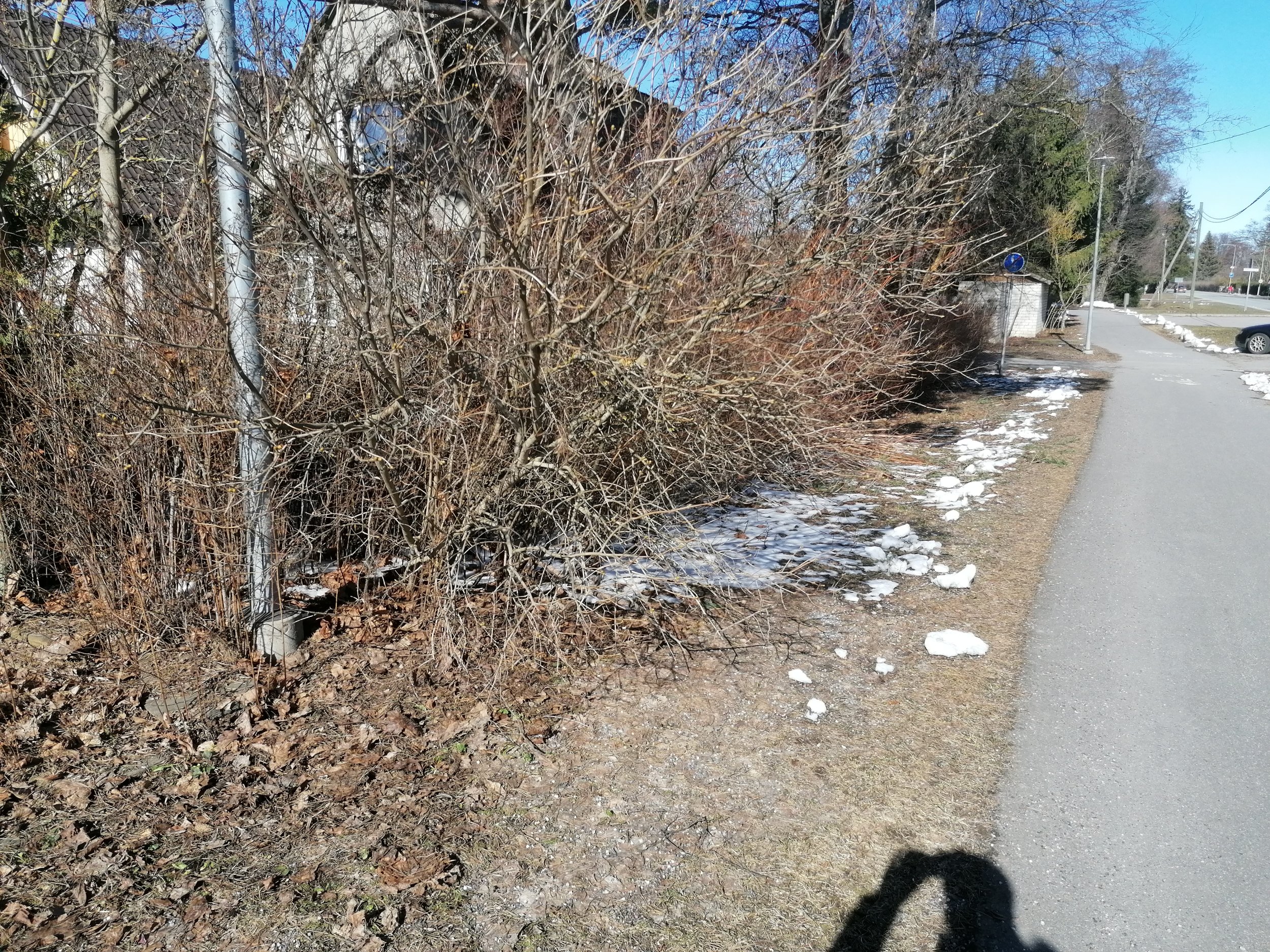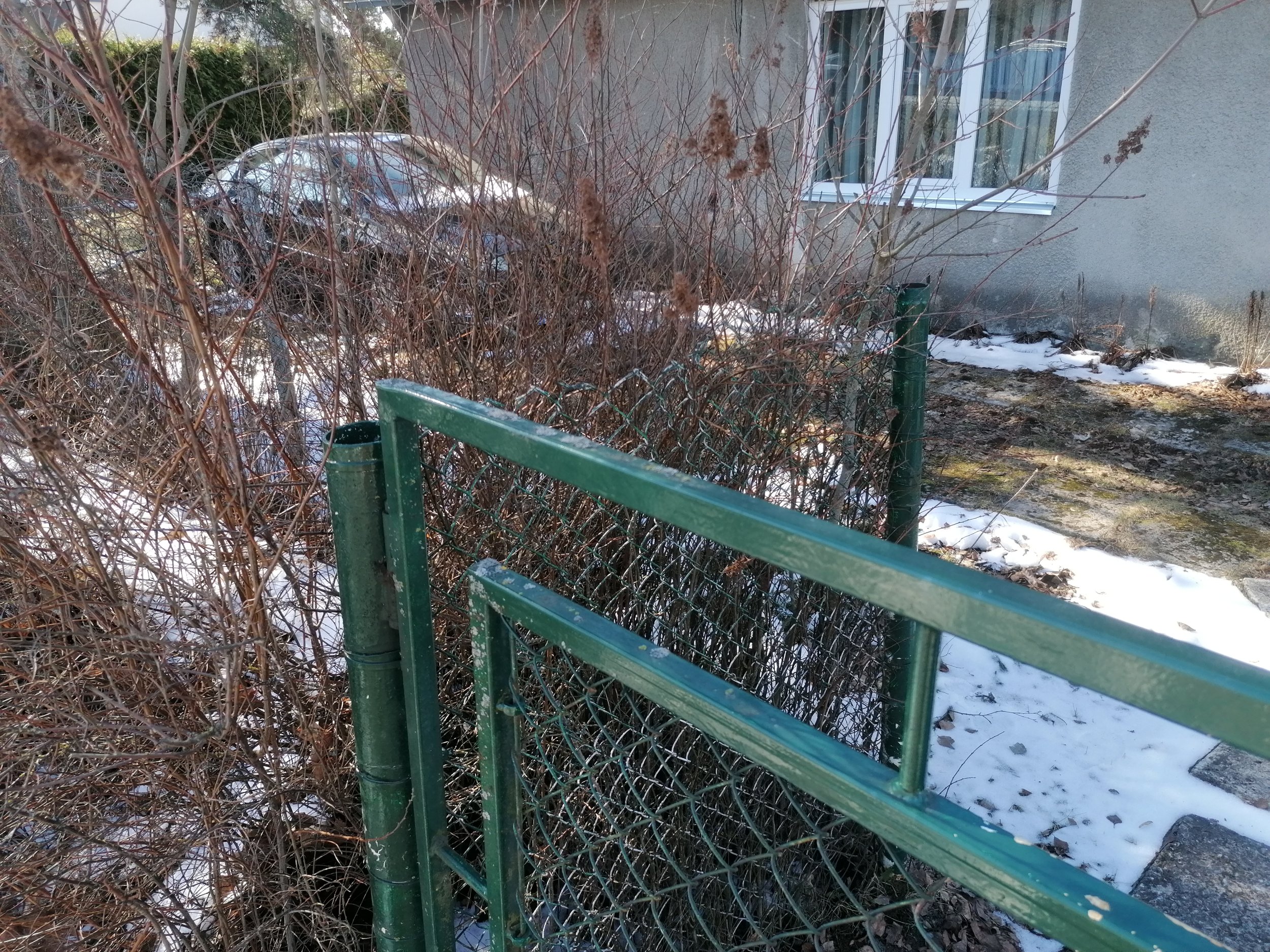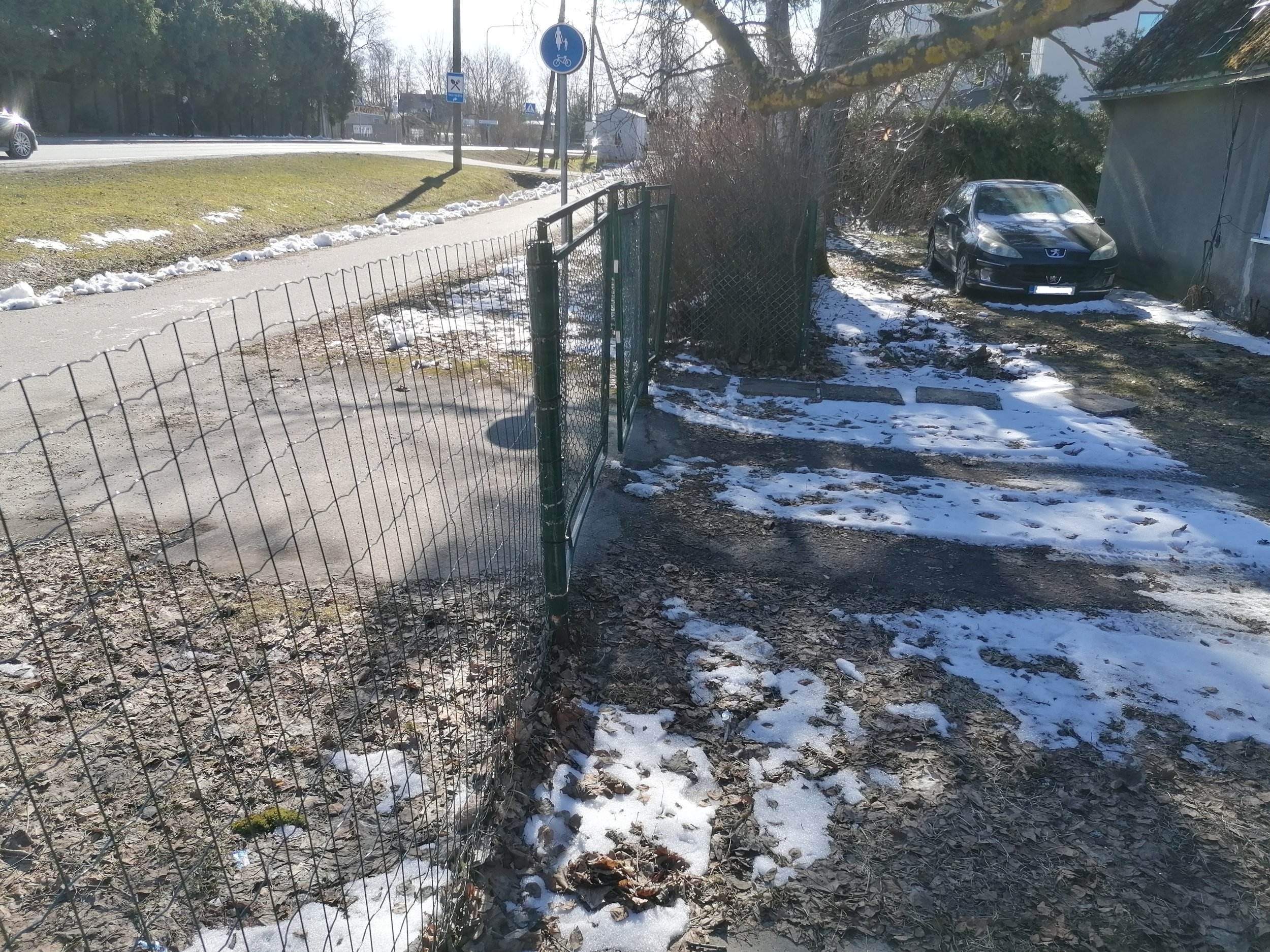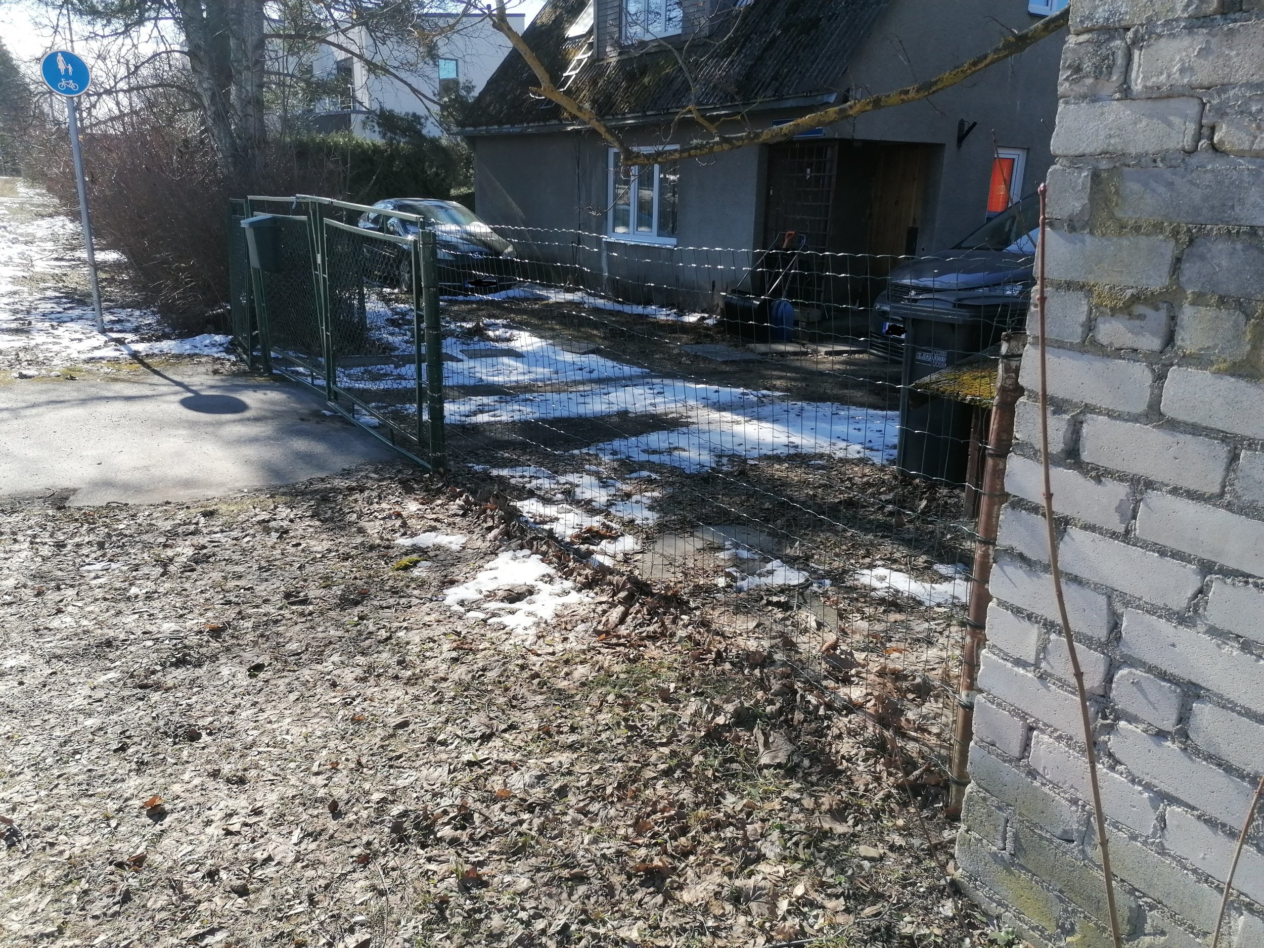 - Hetkel on jalg- ja autovärav ca meetrise väljaastega tänava poole. Uus aed tuleb sirgjooneline olemasoleva võrkaia joonel. (pilt 5)