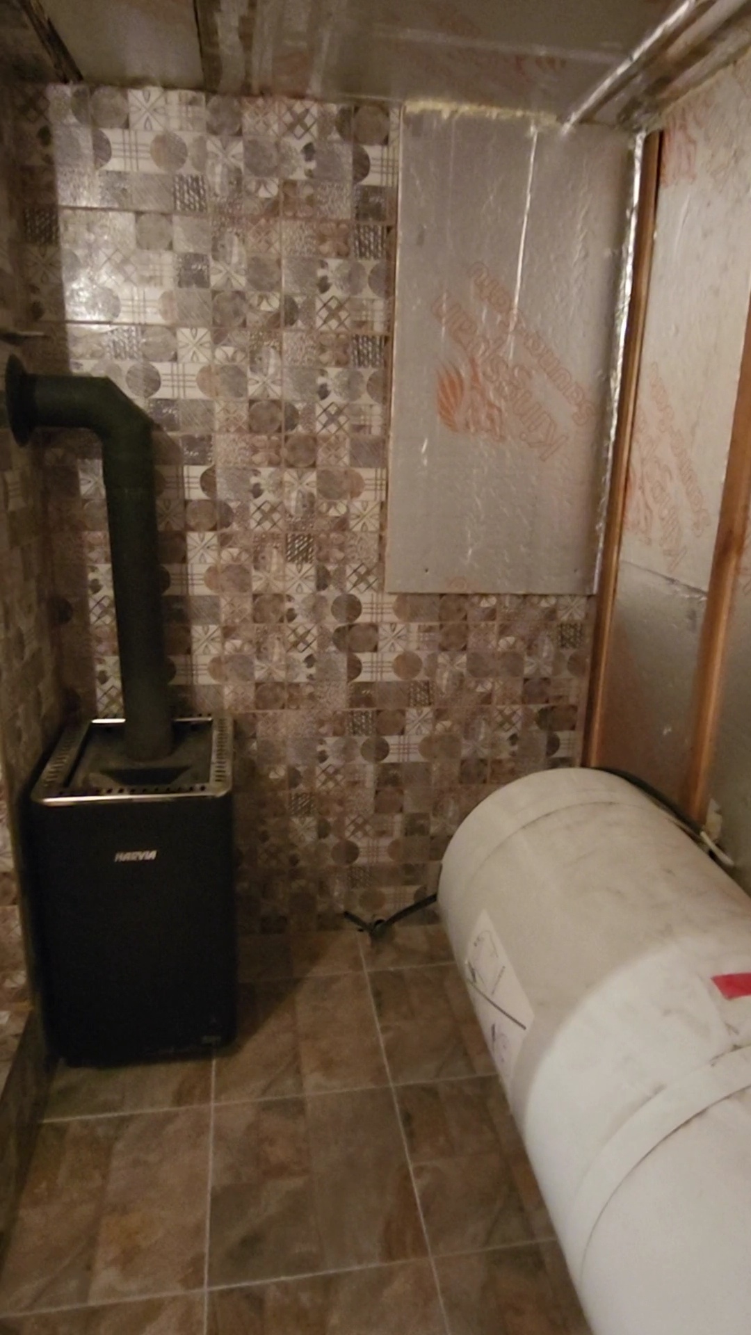 Saunas puukütte ahju, boileri, kraanikausi ja dušši ühendamine. Torud töö tegija poolt. Muu olemas.