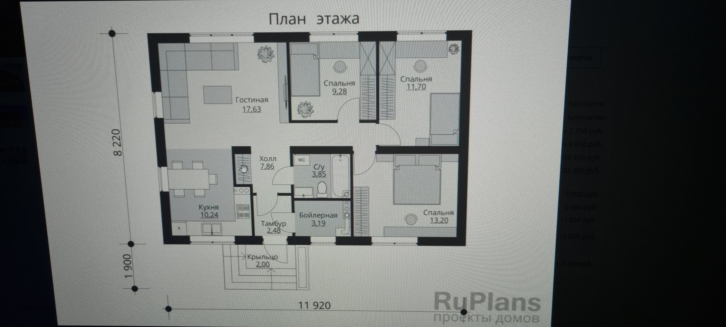 Lisatud planeeringu foto, mis sobib väga hästi. Seal maja on natuke rohkem kui 2 meetrit pikkem, aga võiks teha lühem 1 meetri võrra vasakult poolt ja 1 meetrit võrra lühem paremal pool, et oleks samuti umbes 80 m2 brutto.
