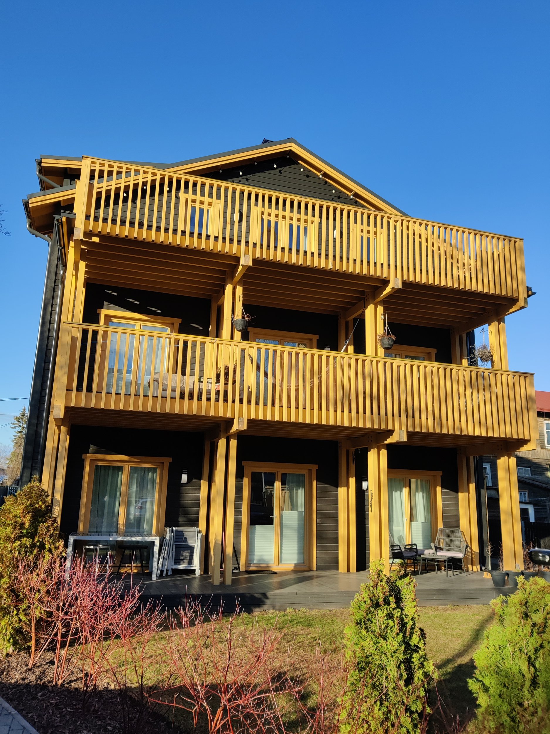 Puitkonstrukstioonist rõdu värvimine 1-3 korrus. Rõdu valminud 2019.