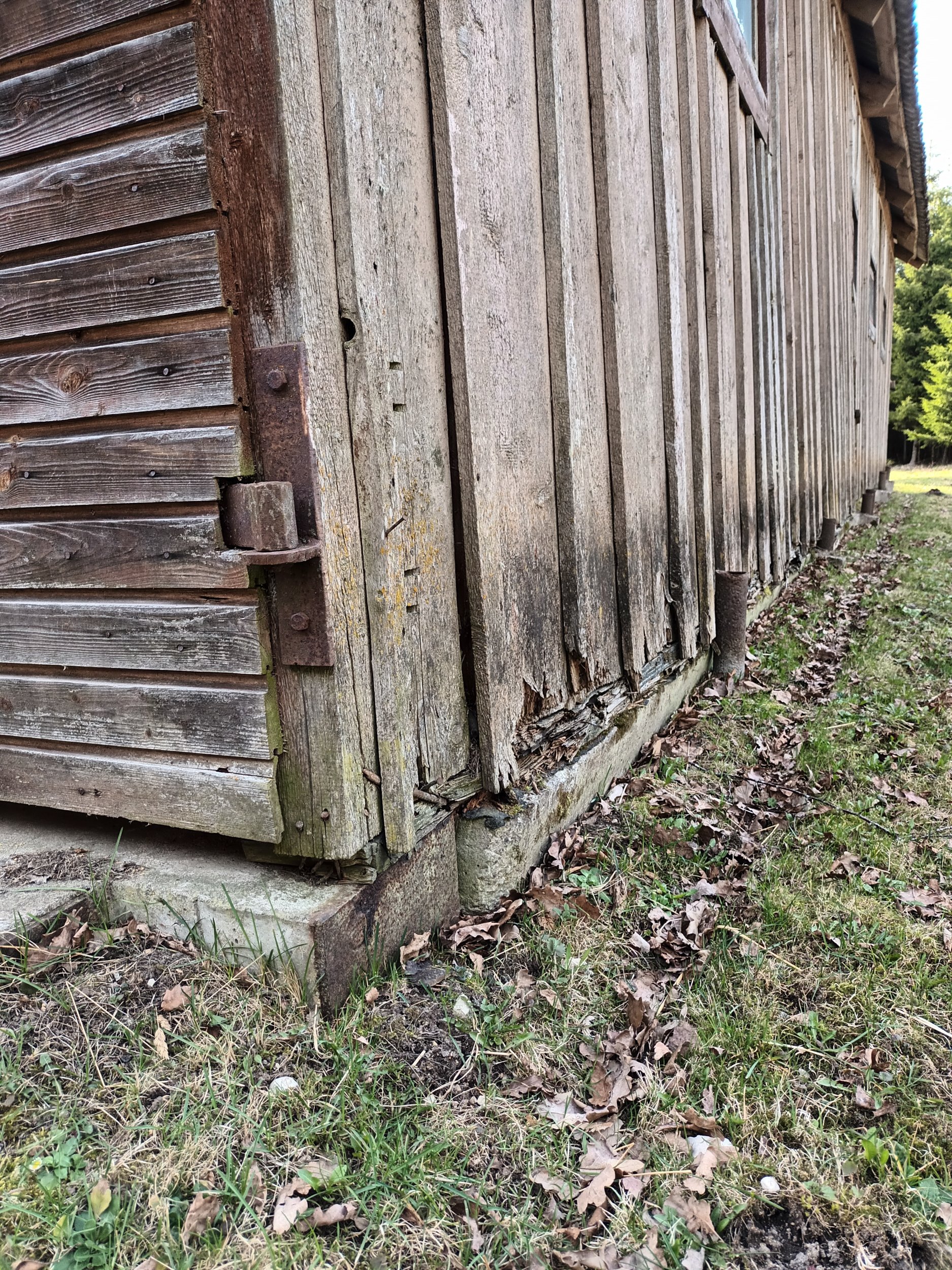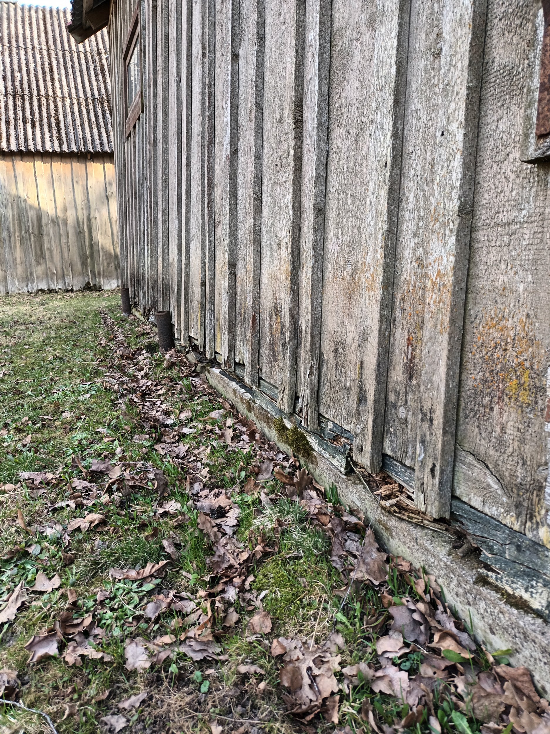 Vaja on üks külg üles kergitada, vundamendiplokkide alust täita kruusa/killustikuga, plokid paika ajada, kõigil püstpalkidel paarkümmend cm kahjustunud otsad maha saagida, uus alumine vöö panna 100x100 või 100x200 prussidest.
