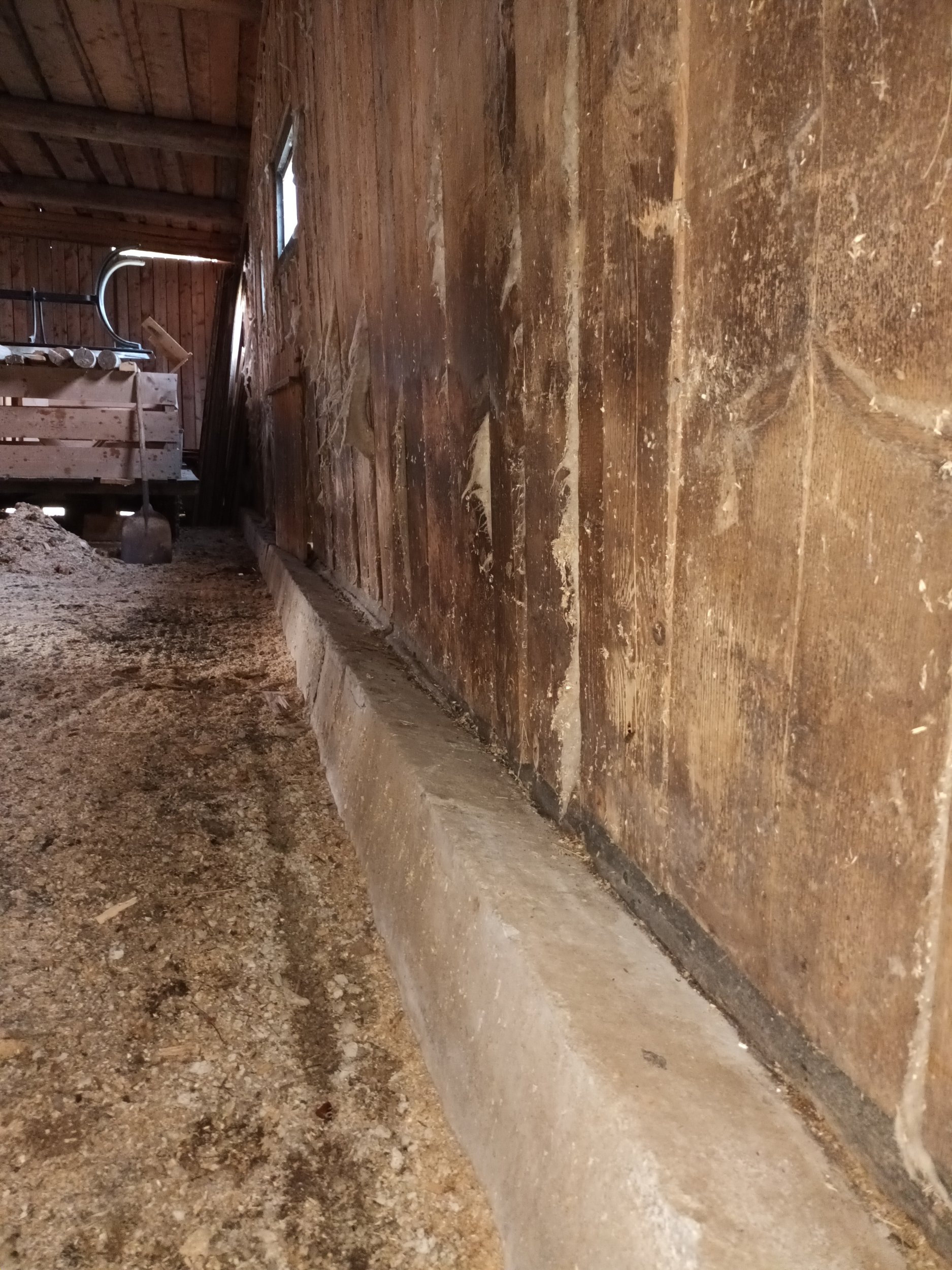 Püstpalkidest lambalauda ühe külje vundament on ära vajaunud. Vundament on maapealne, vundamendiplokkidest (fermidest), pikkusega 16 m.