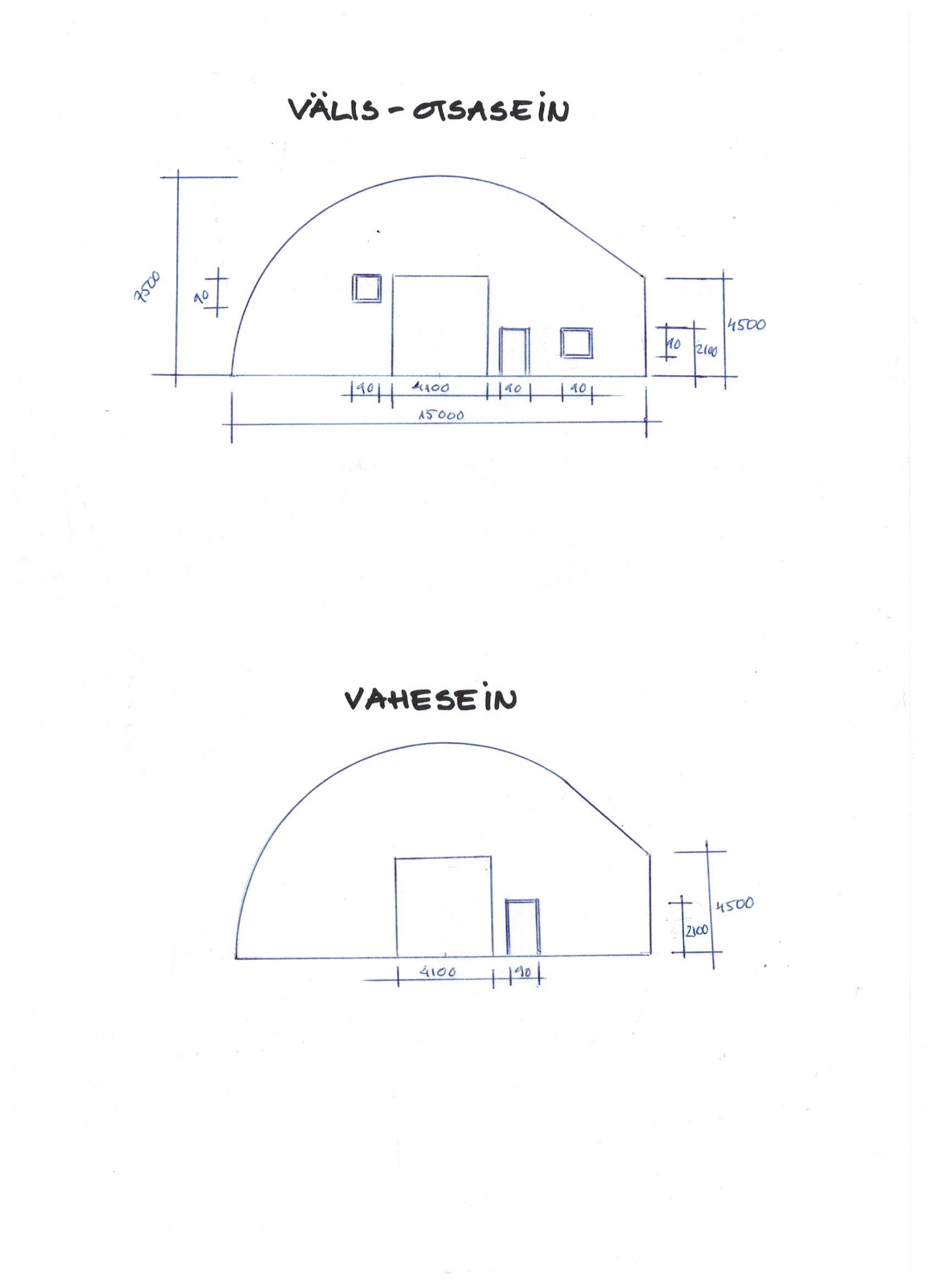 Kaarhalli ühe otsa- ja ühe vaheseina soojustamine. Kaarhall on jagatud kaheks ruumiks. Soojustada tuleb üks välissein ja ruumi kaheks jagav vahesein.