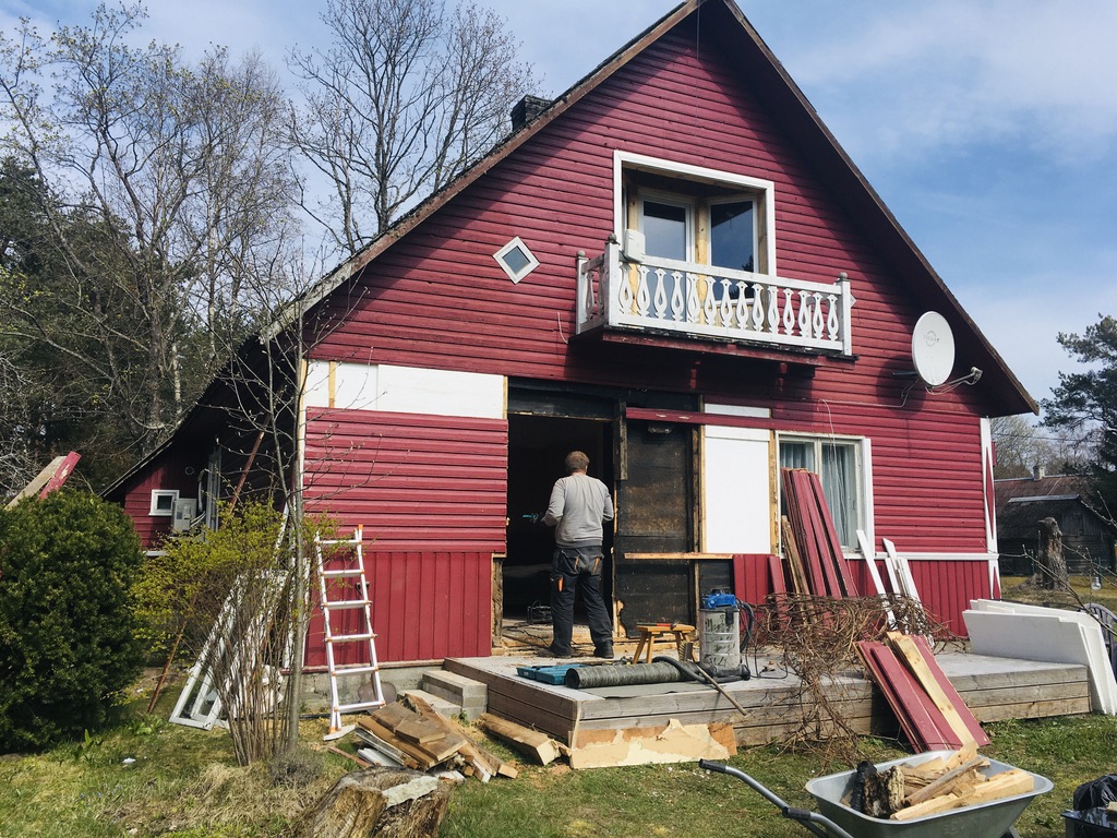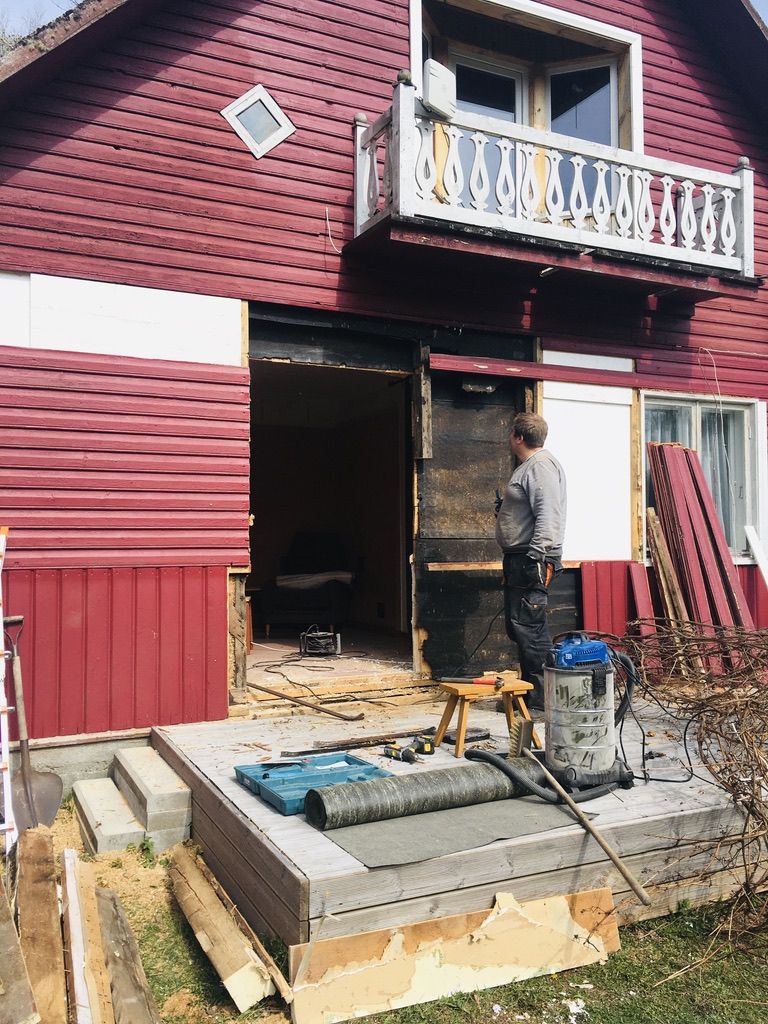 soojustus jms vajalik, vertikaalne laudis) + vintskapi ehitus + välisukse juures välisseina liigutamine