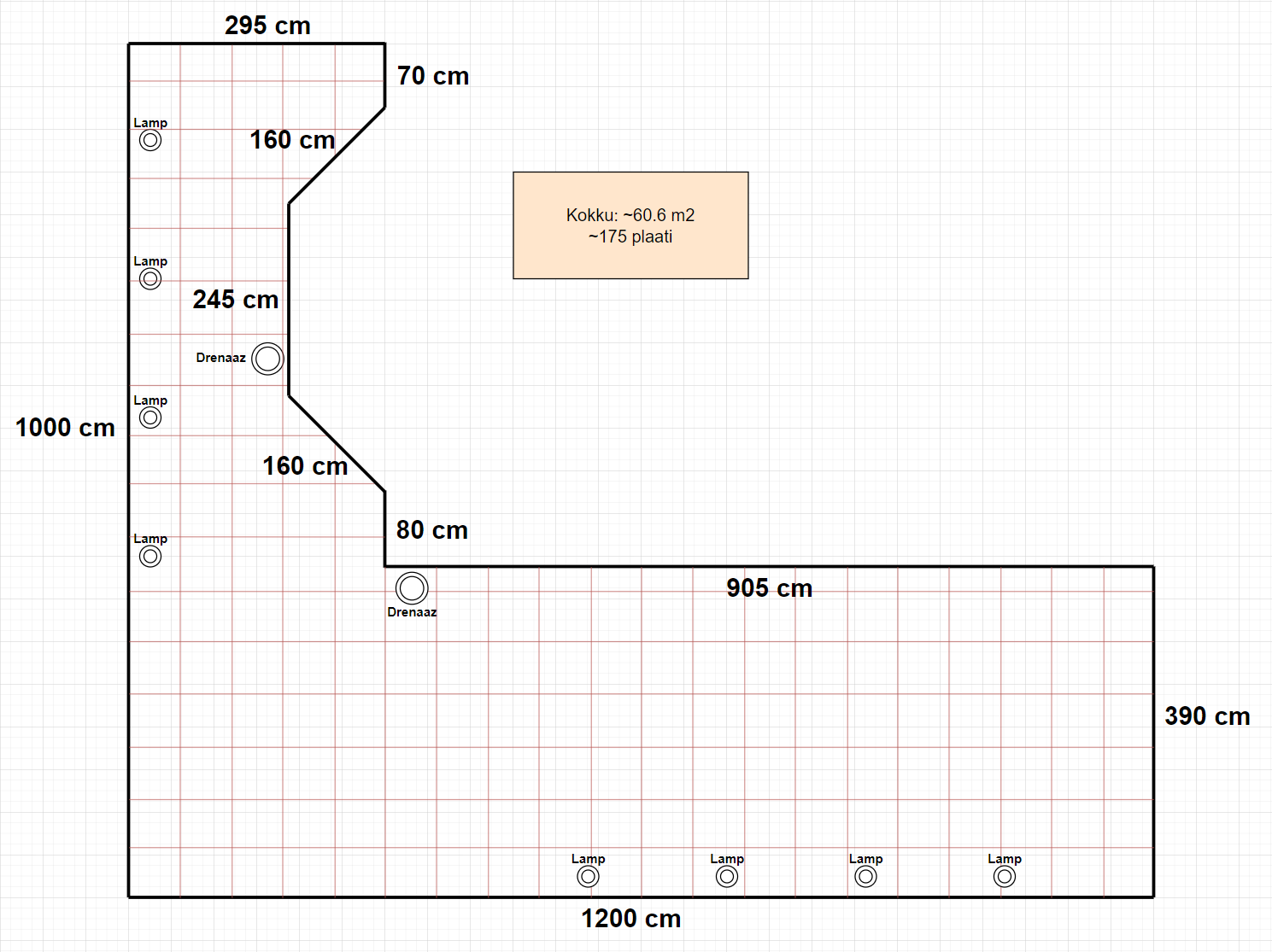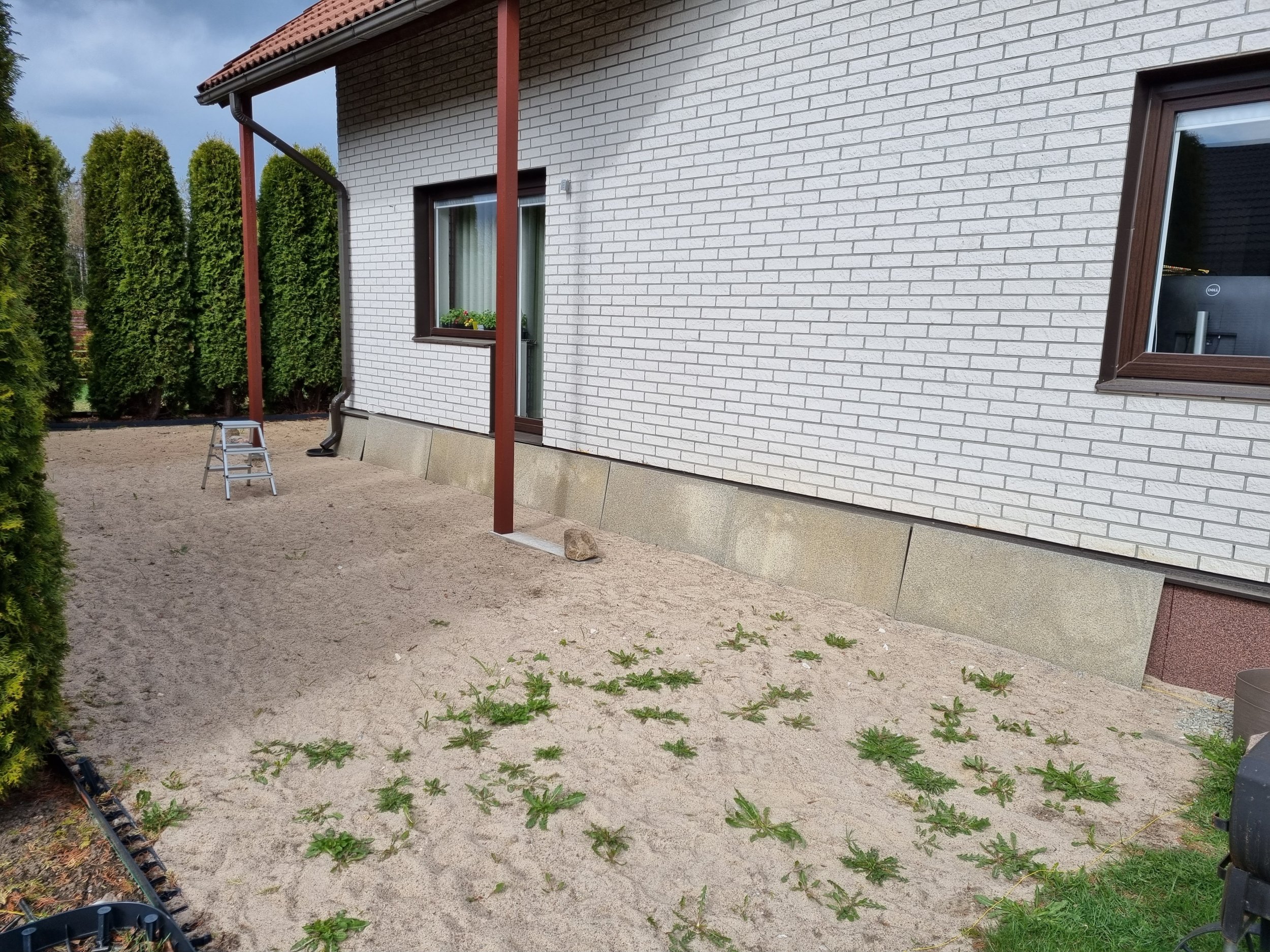 Vana puidust terrass sai ära lammutatud, ja soov on ehitada uus terrass, aga seekord 60x60x2 cm kiviplaatidest. Terrassi enda pindala on umbkaudu 60.6 m2.