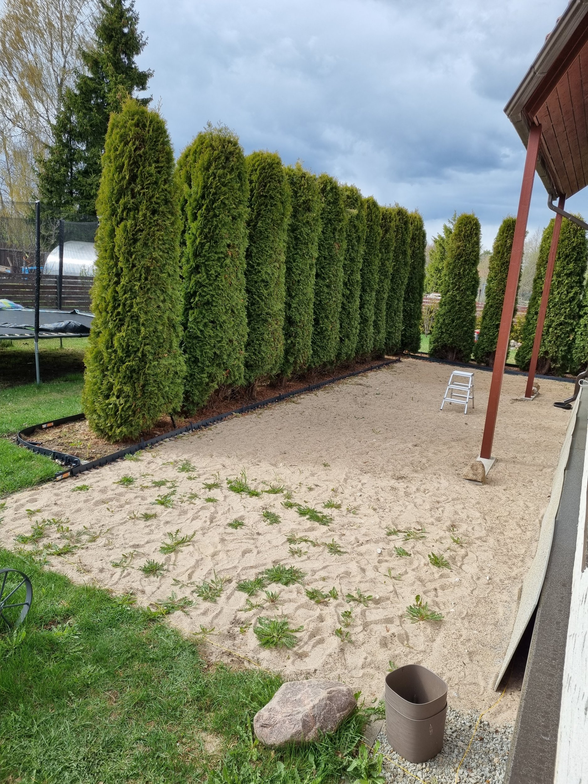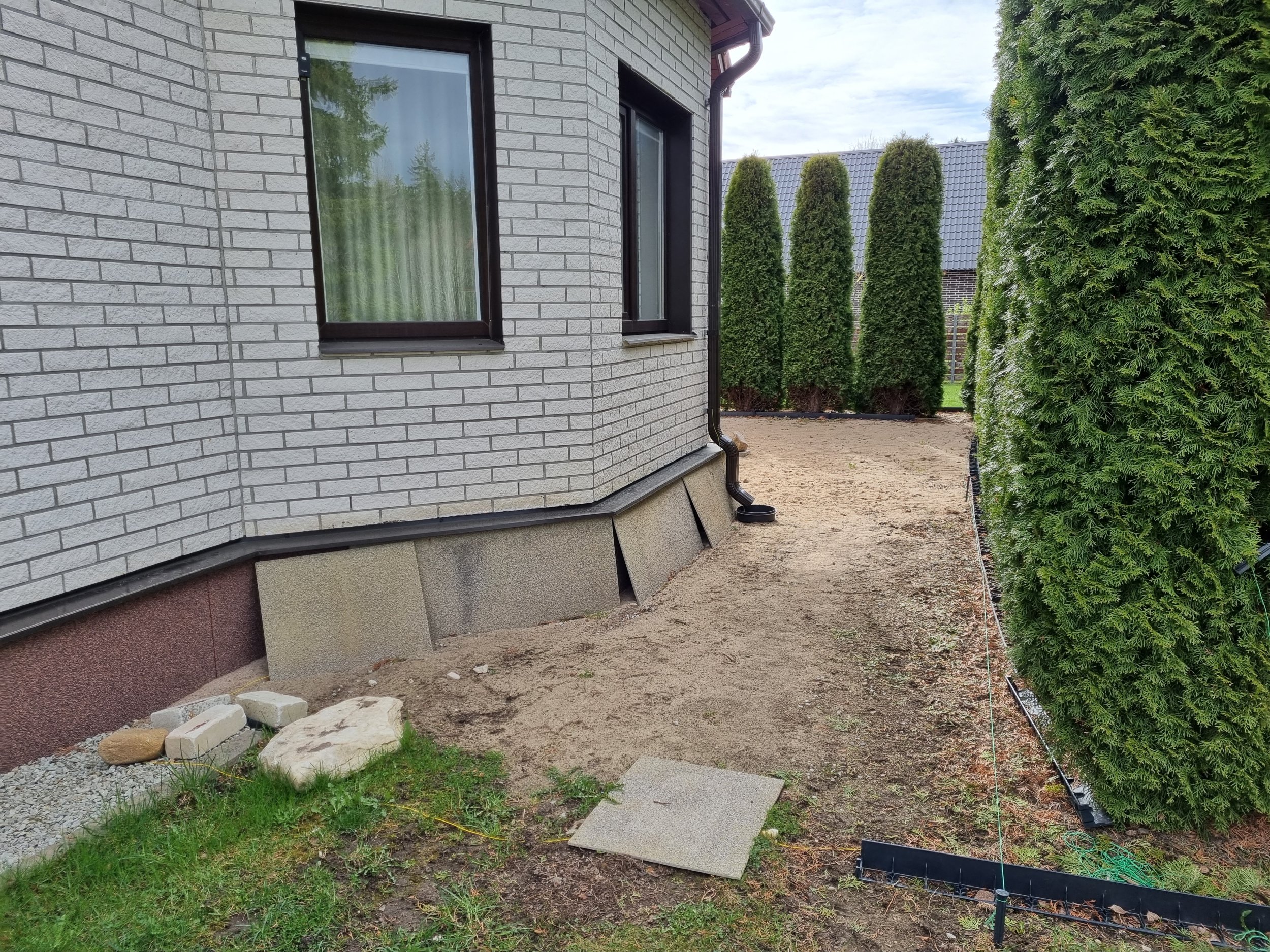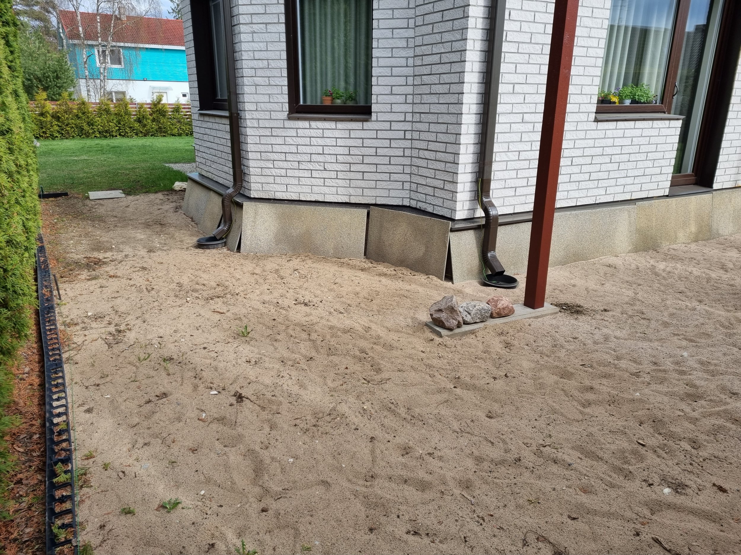 Terrassile tuleb lisada kaks drenaasiauku, ja kaabeldus 8 lambi jaoks. Kaabel on olemas, kust hargnemisi teha. Lampide paigaldus ei ole töö sees. Peenraääre paigaldus ei ole töö sees, aga soovi korral võime eraldi kokku leppida selle.