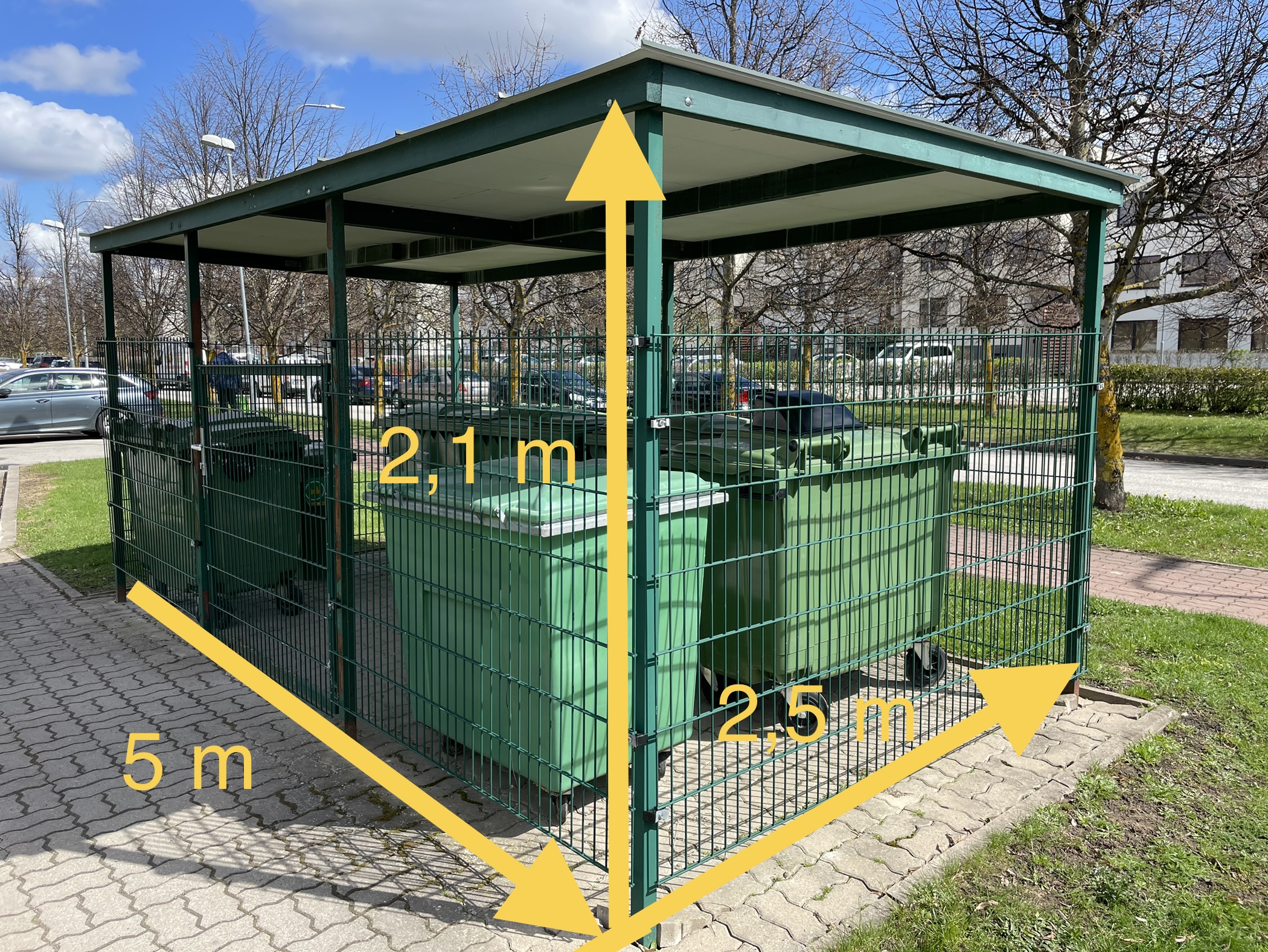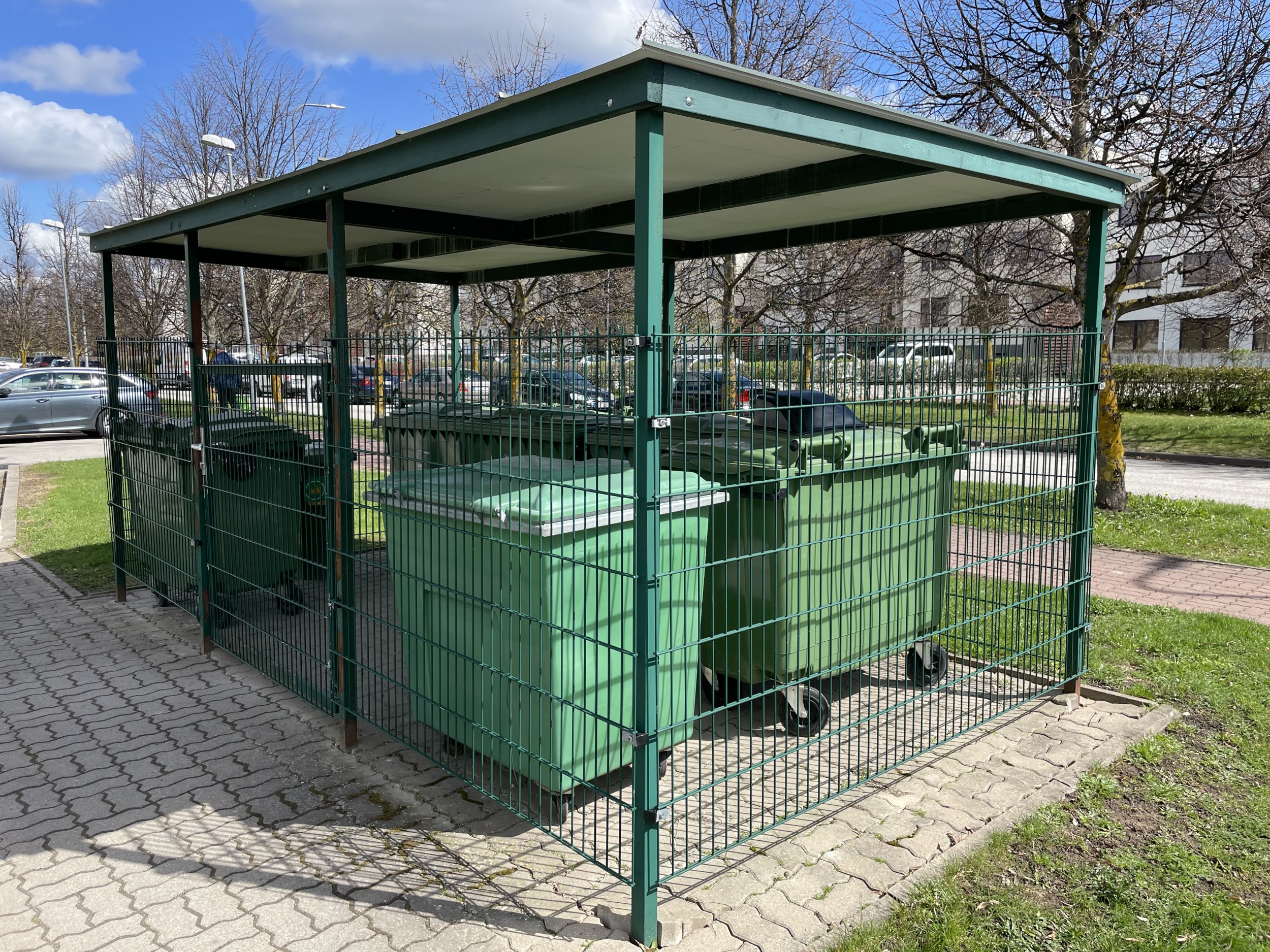 Korteriühistu jäätmemaja on hetkel vaid osaliselt ümbritsetud traatvõrguga. Soov on see maast katuseni kinni ehitada, et linnud ligi ei pääseks.