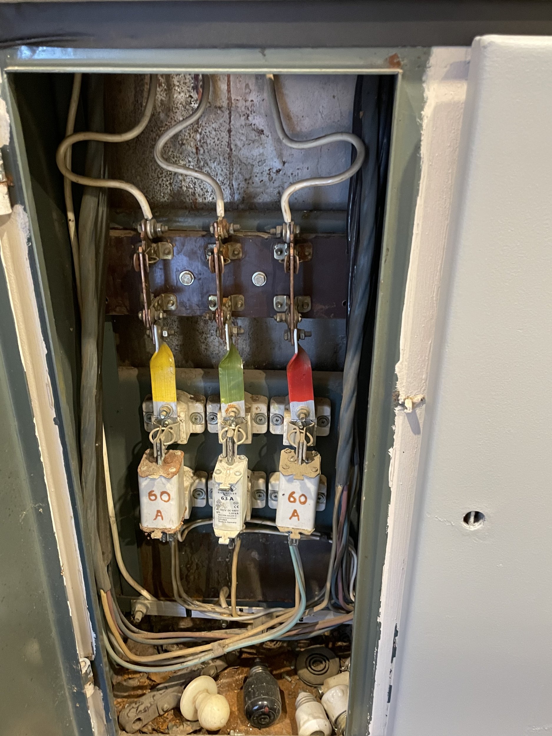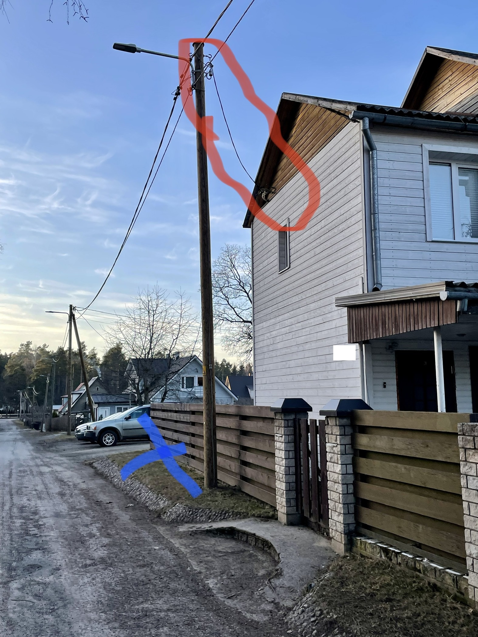 Hetkel asub maja peakilp ühes korteris ja see oleks vaja uuendada ning tuua välja pidil oleval sinise risti juurde.