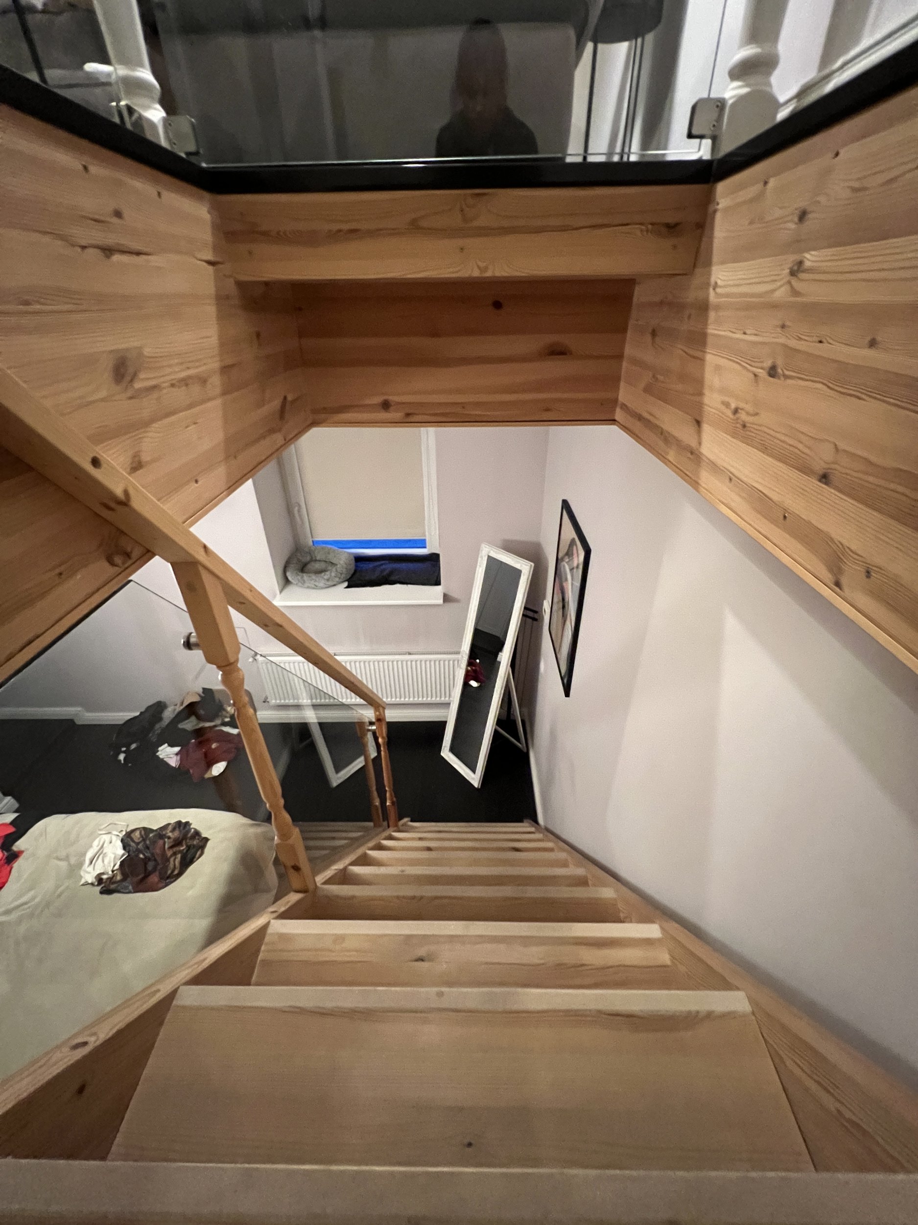 Soovin Tallinna kesklinna korteris muuta trepipiiret. Praegu võtab trepipiire ülemisest toast tarbetult palju ruumi. Hetkel on trepipiire on klaasist (puidust detailidega).