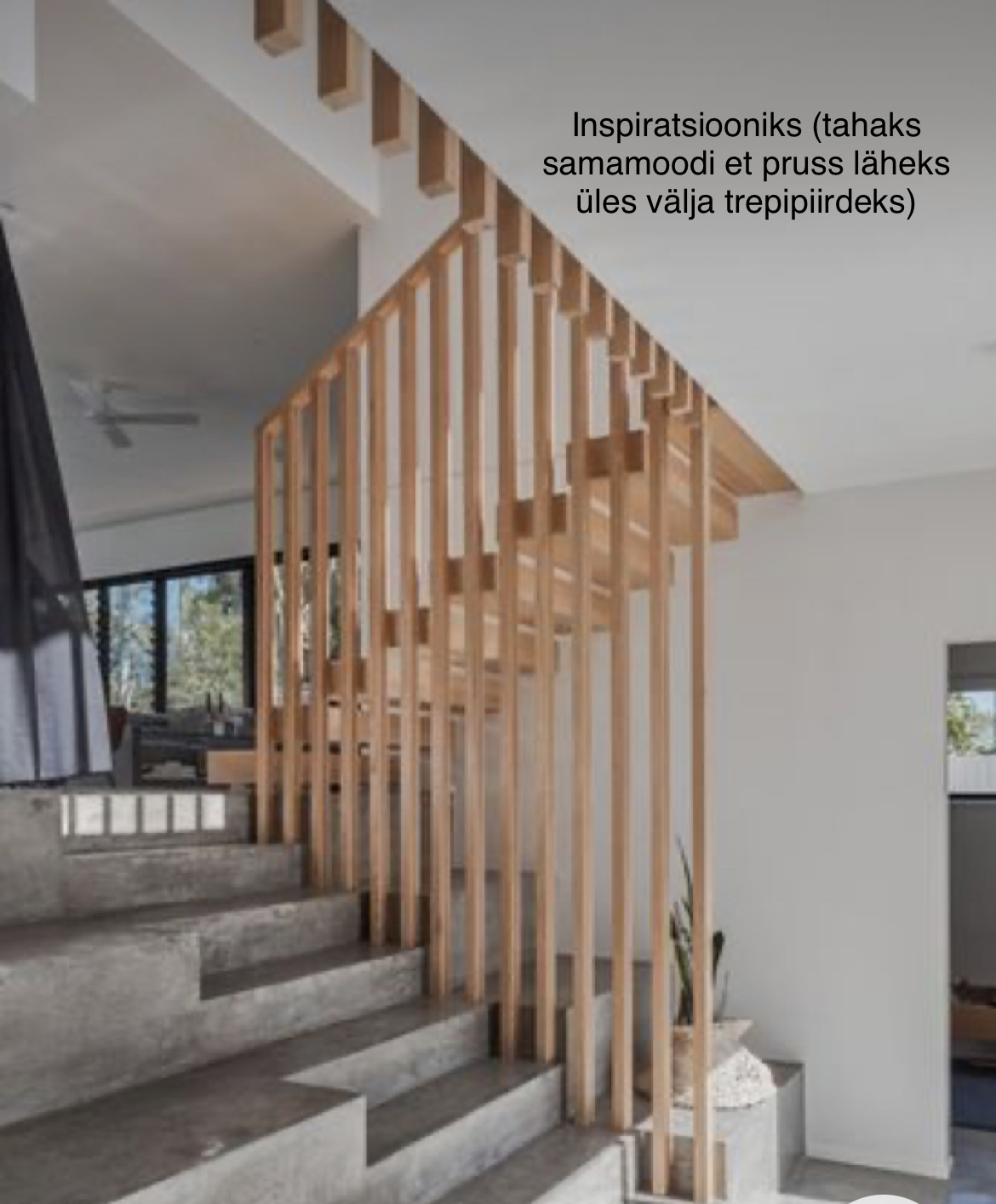 Trepipiirde uus lahendus oleks valgete puitprussidega mis jookseksid trepiastmest trepipiirdeni ehk trepipiire ja käsipuu moodustuks samadest prussidest justkui seinana trepi allosa suhtes.