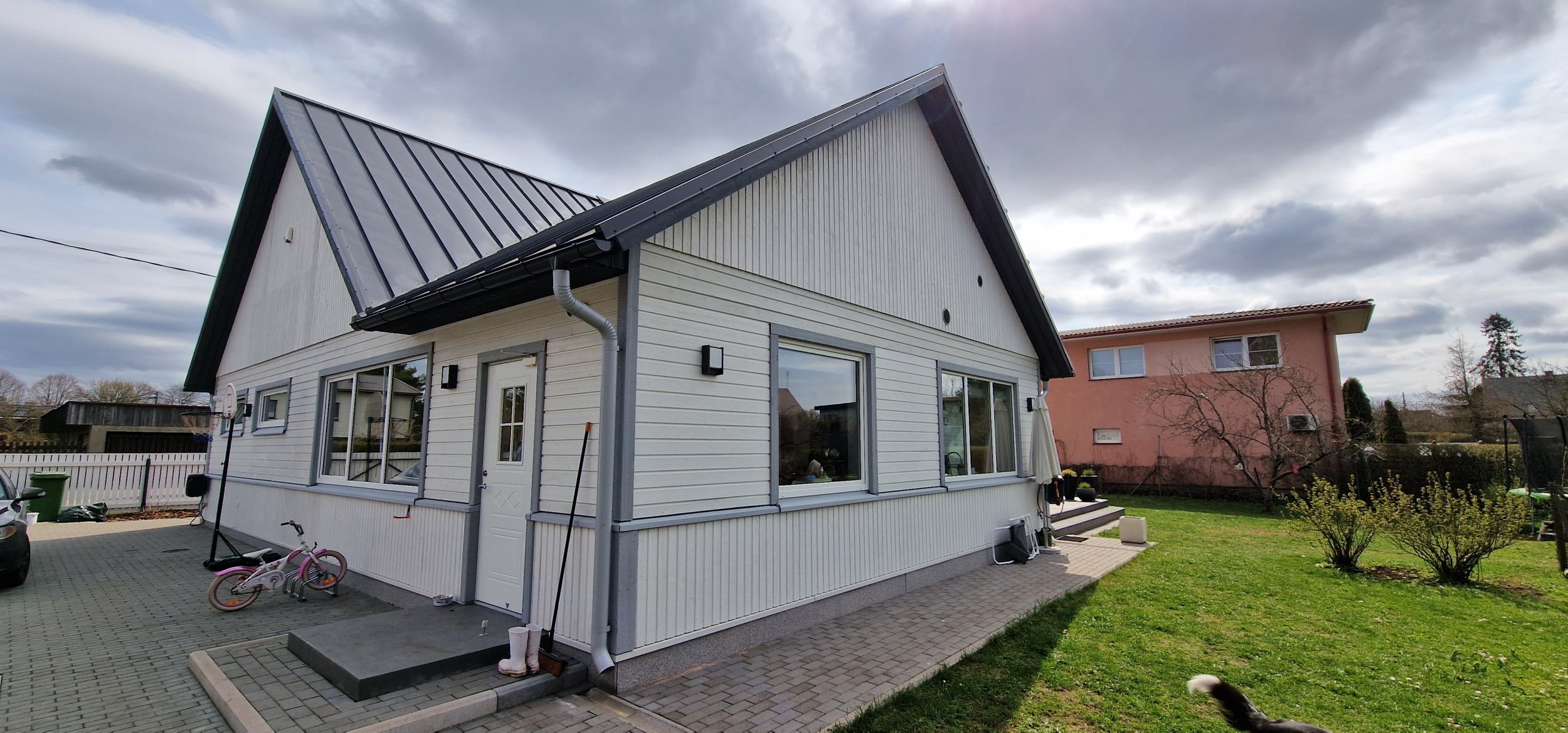 Värvida on vaja valge laudis ja hele hallid (Ukse, akna ja nurga) liistud ühe kihiga.