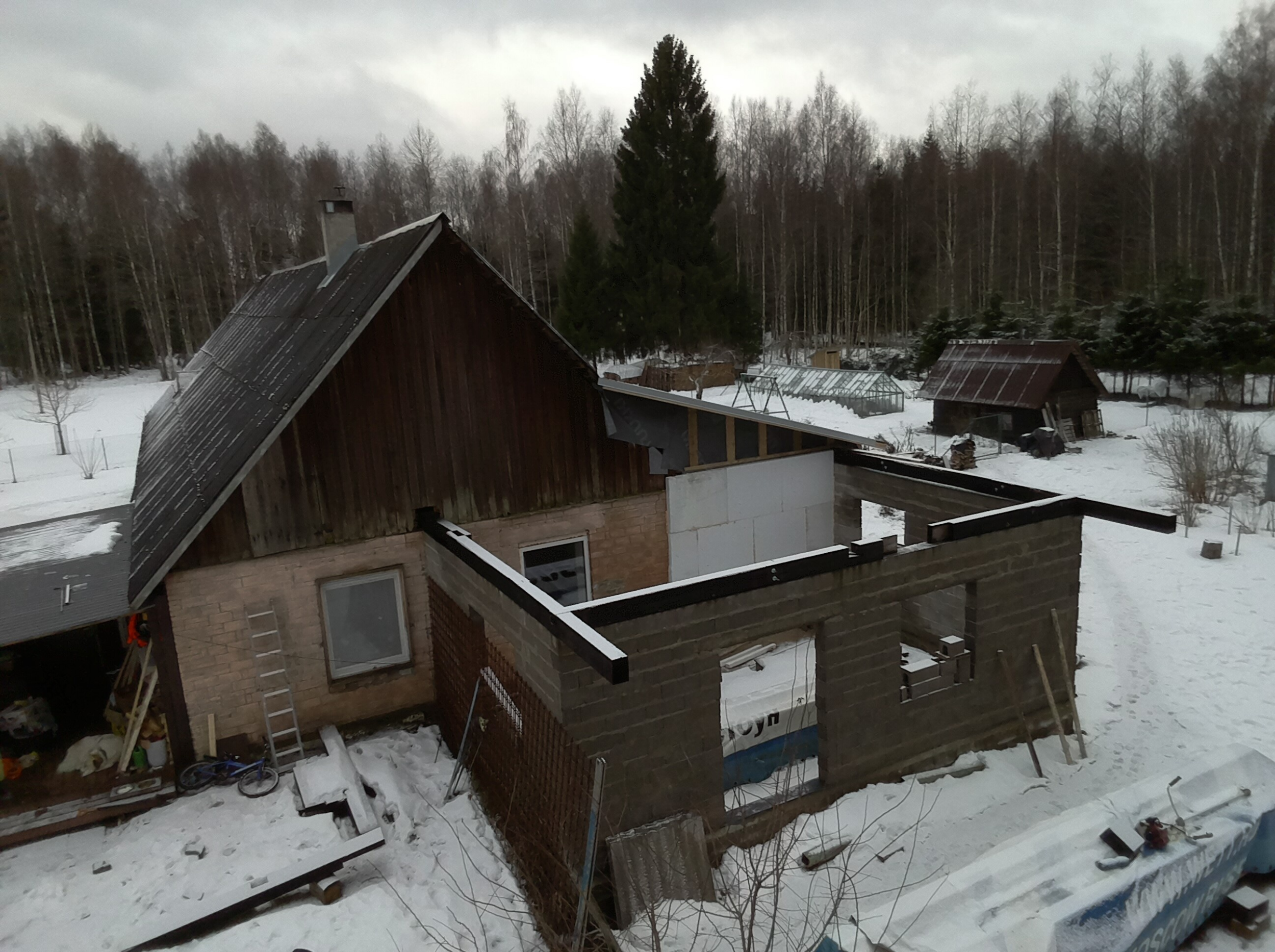 Olemasolevale hoonele juurdeehitise projekt 15 m2 +40 m2, juurdeehitise müürid olemas ja juurdeehitise katuseplaan olemas.