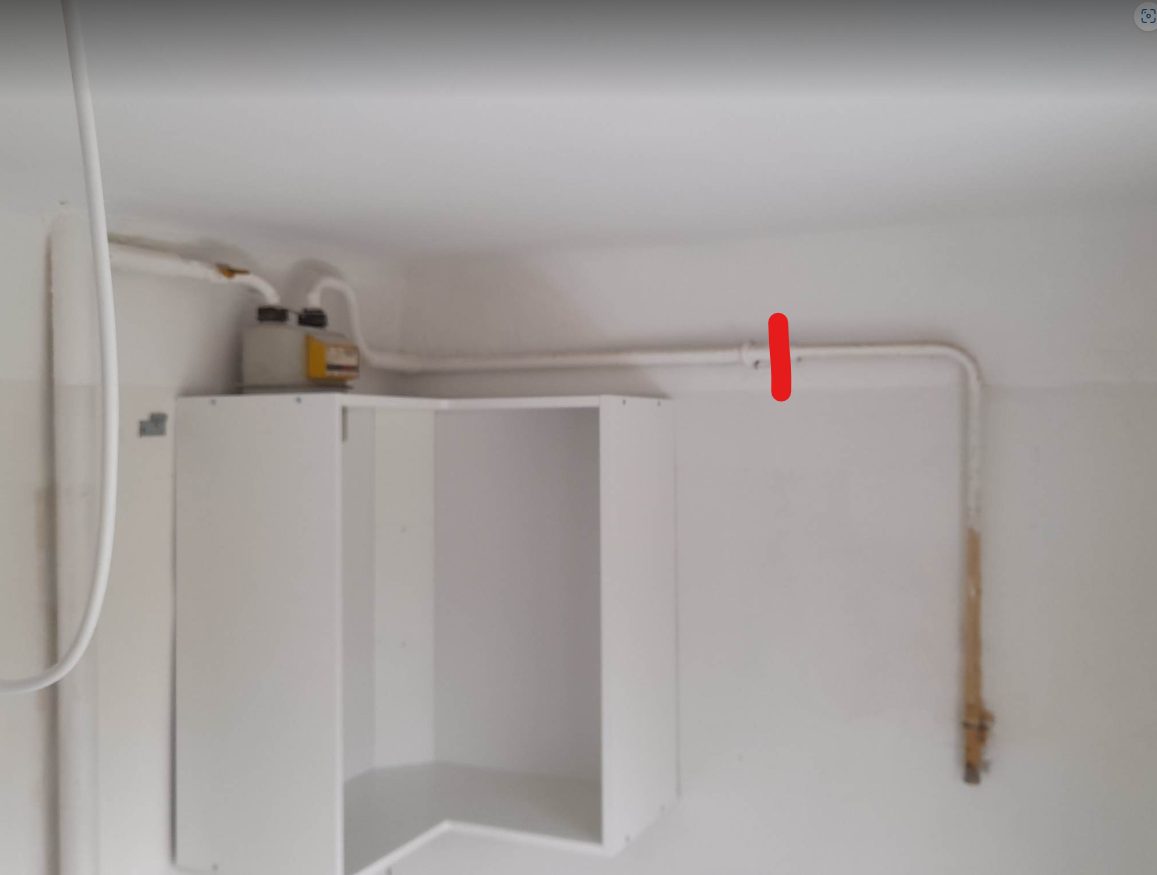 Joonisel viidatud kohast on vaja toru läbi lõigata ja pime ette panna - segab köögimööbli paigaldust.