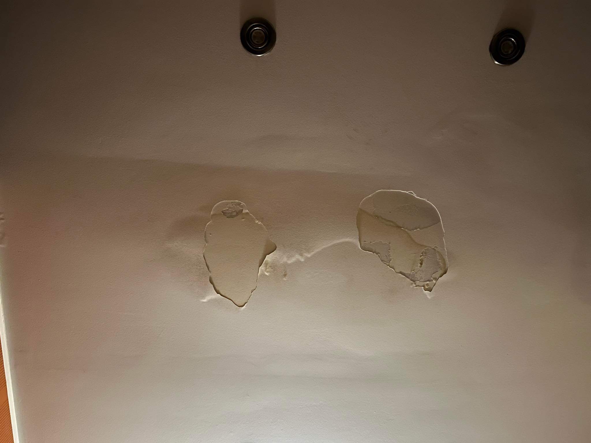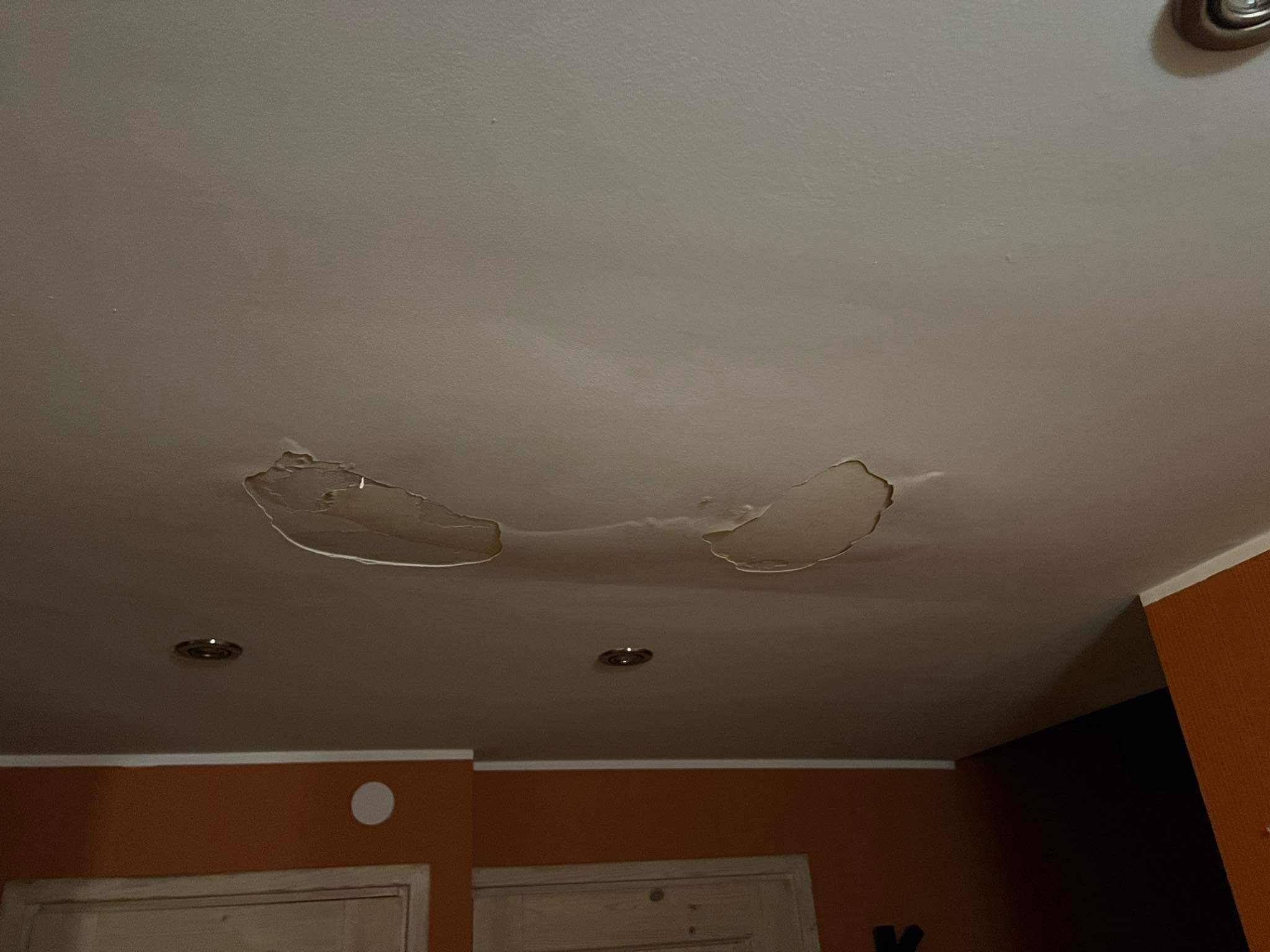 Vaja pahteldada ja värvida lagi - lisaks vaadata üle, mis lae all toimub ja teostada vajalikud parandustööd. Tegemist veekahjustusega.