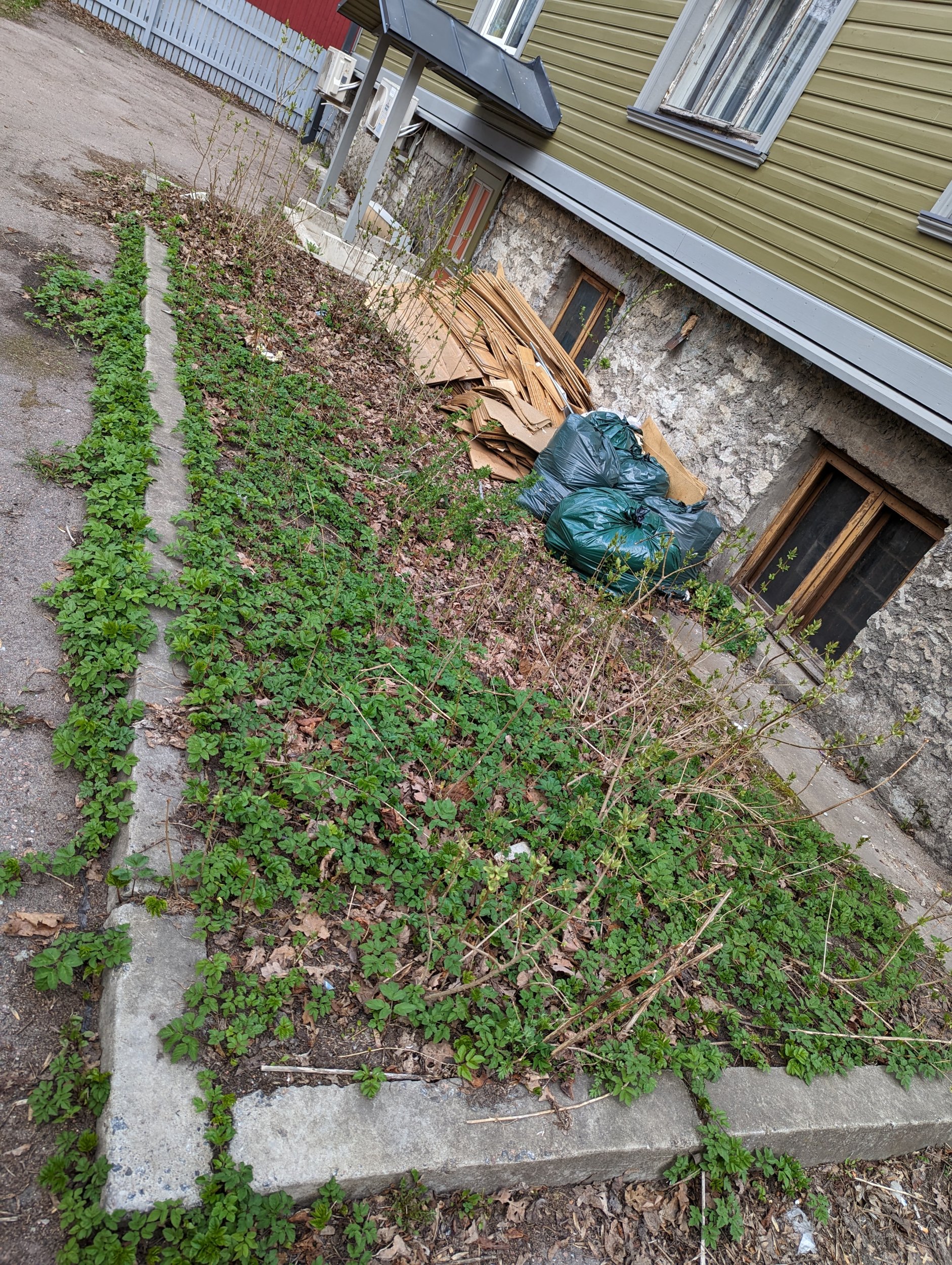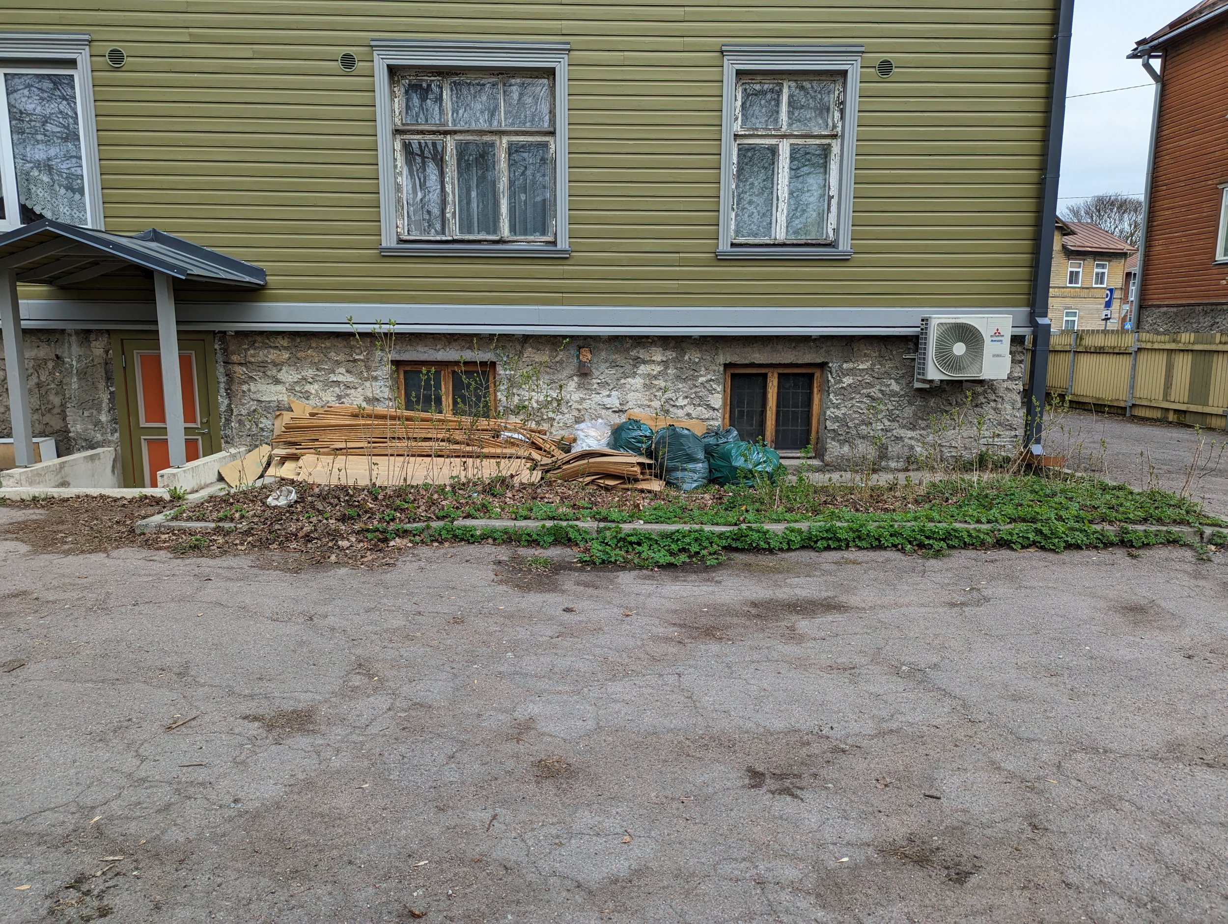 Peenrast sirelite üles kaevamine ja vajadusel mulla lisamine, et saaks uued taimed istutada (seda teeb KÜ ise). Peenra mõõdud on umbes 3x7m. Pildil olevad ehitusmaterjalid on praeguseks ära viidud.