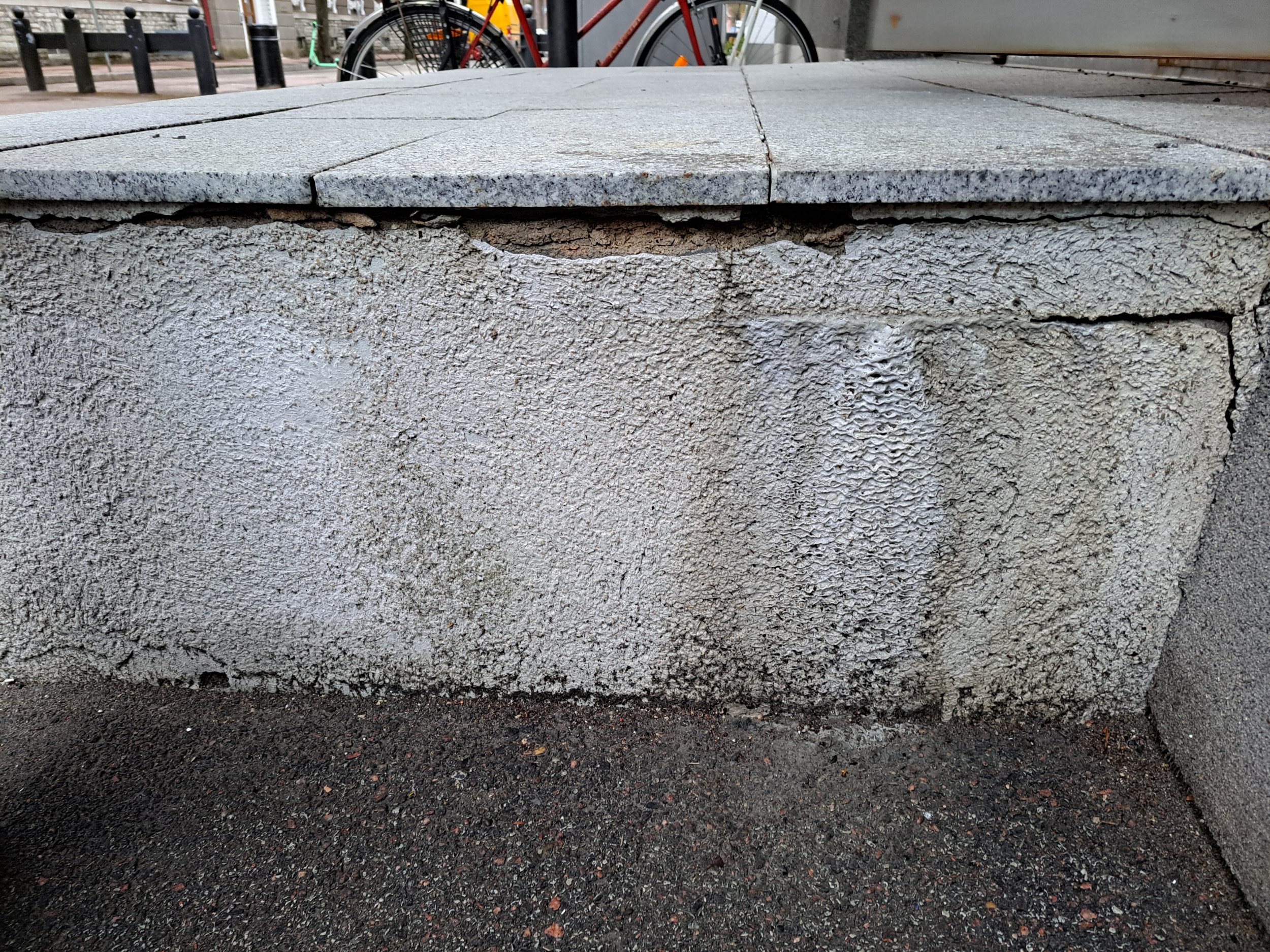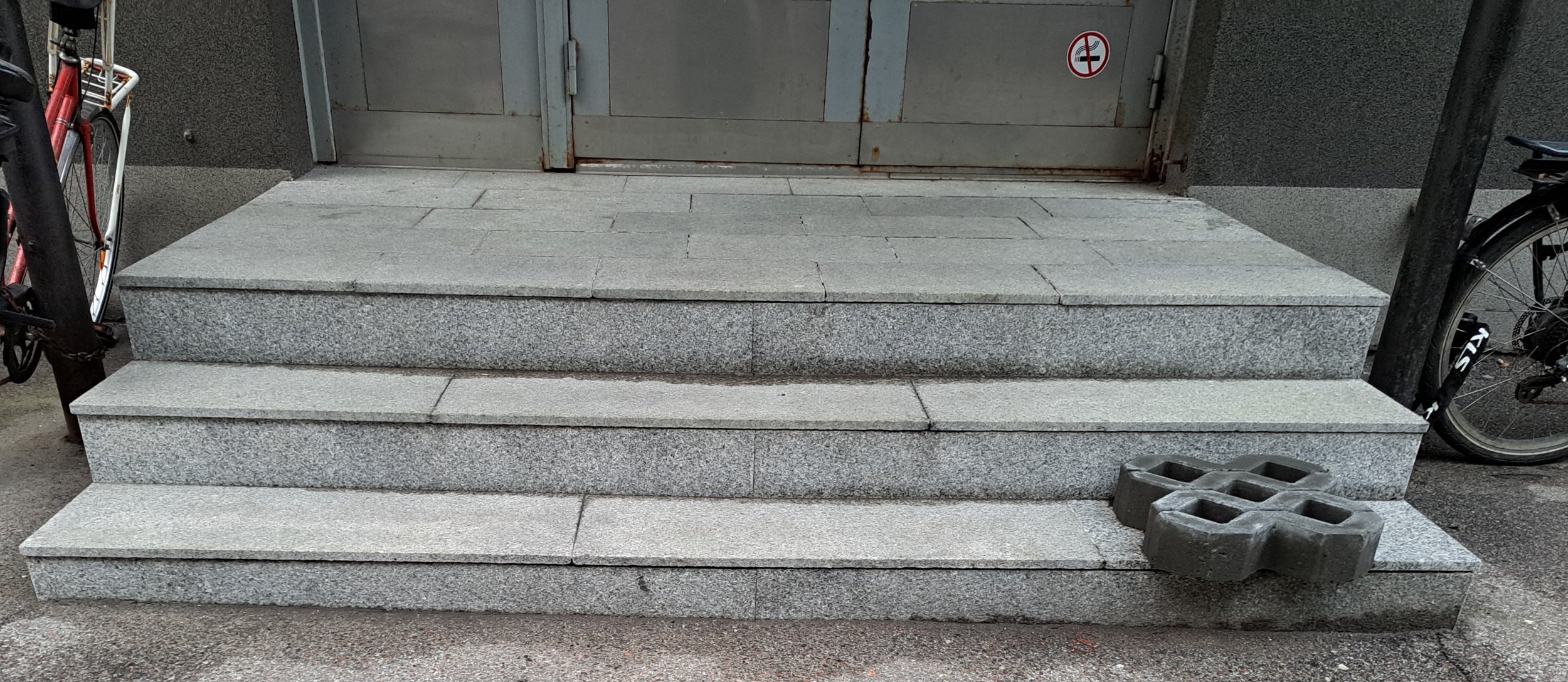 Elamu välistrepi plaadid on osaliselt lahti, sest kivide all olev sidusaine on aja jooksul ära vajunud. Vaja oleks trepi kiviplaadid üles võtta ja uus alus teha, kuhu siis saab olemasolevad kivid kui on võimalik tagasi panna või on vaja uued kiviplaadid trepile panna.