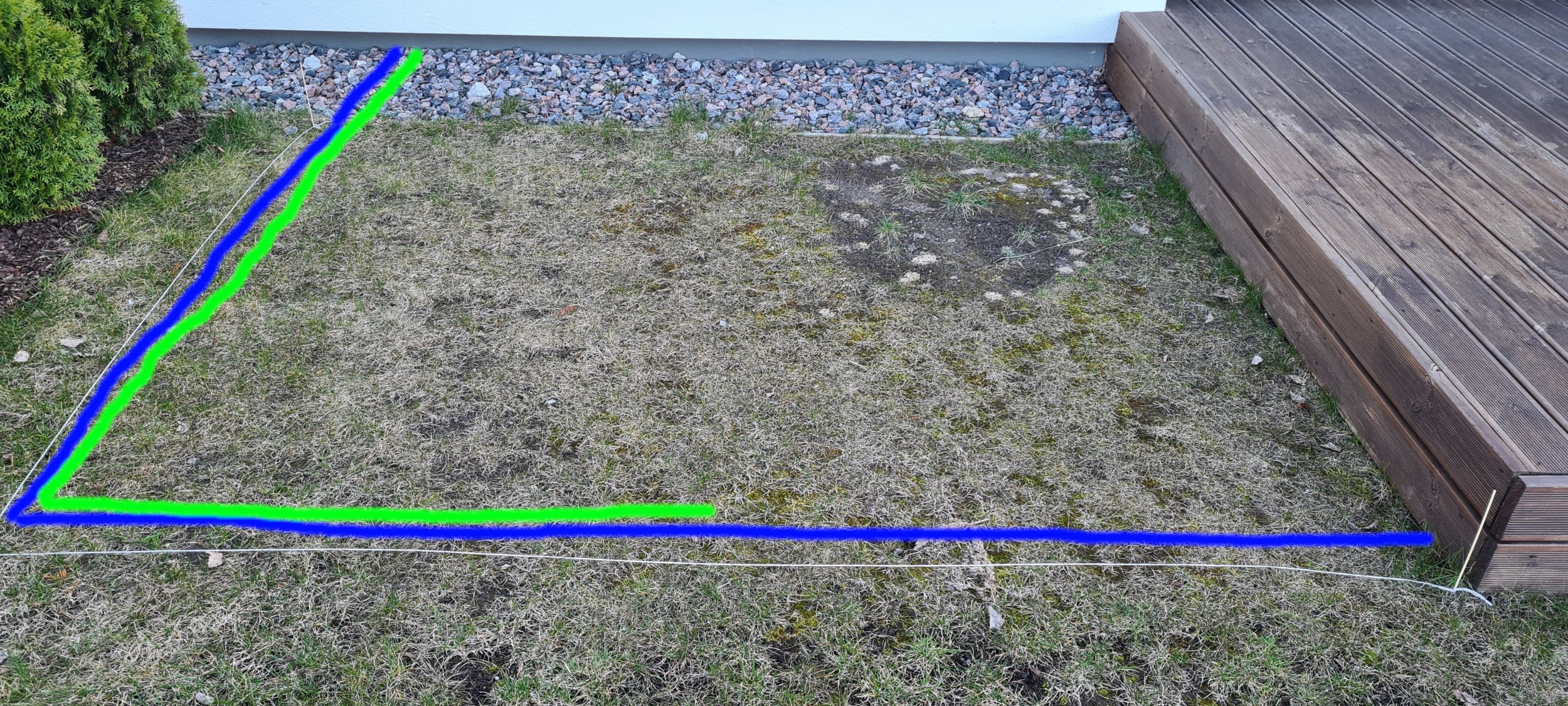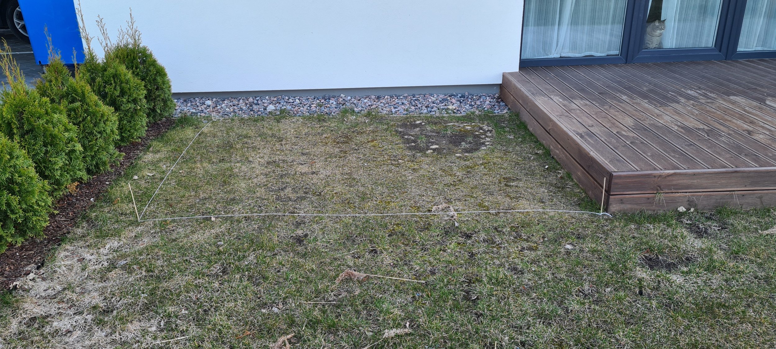 Uus terassi osa on 2,5m x 2,5m suur (piltidel sinise joonega märgistatud).