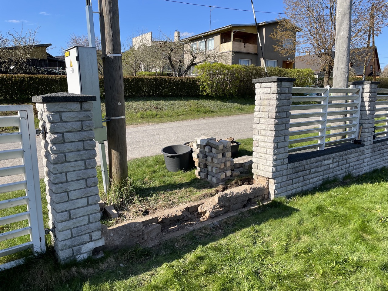 Vasakpoolne aiapost on viltune ja surub värava peale, mis takistab värava normaalset sulgumist ja avanemist. Post vajab uuesti ladumist või oma kohale liigutamist. Posti kõrgus 1,4 m.