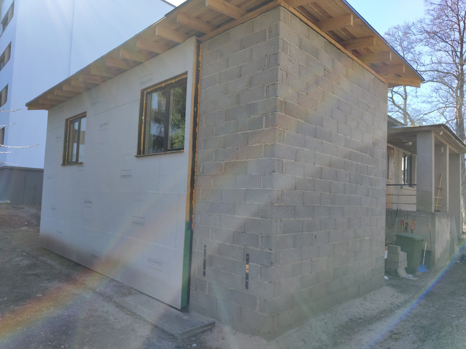 Töö oli kiire ja korralik. Ilmad natuke takistasid tööde algusust (liiga soe ja kuiv segutöödeks). Aga kui soodne pilves ja nati vihmane ilm tuli läks töö kiirelt lahti. Seinad ilusad ja sirged. Ka tehti kahe erineva seina liitekoht nõnda ilusti ära, et pole aru saada sellisest eripärast.