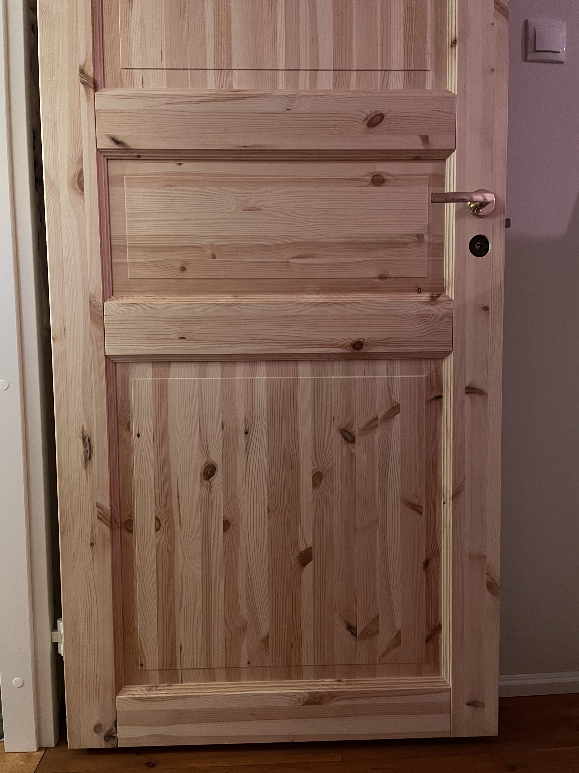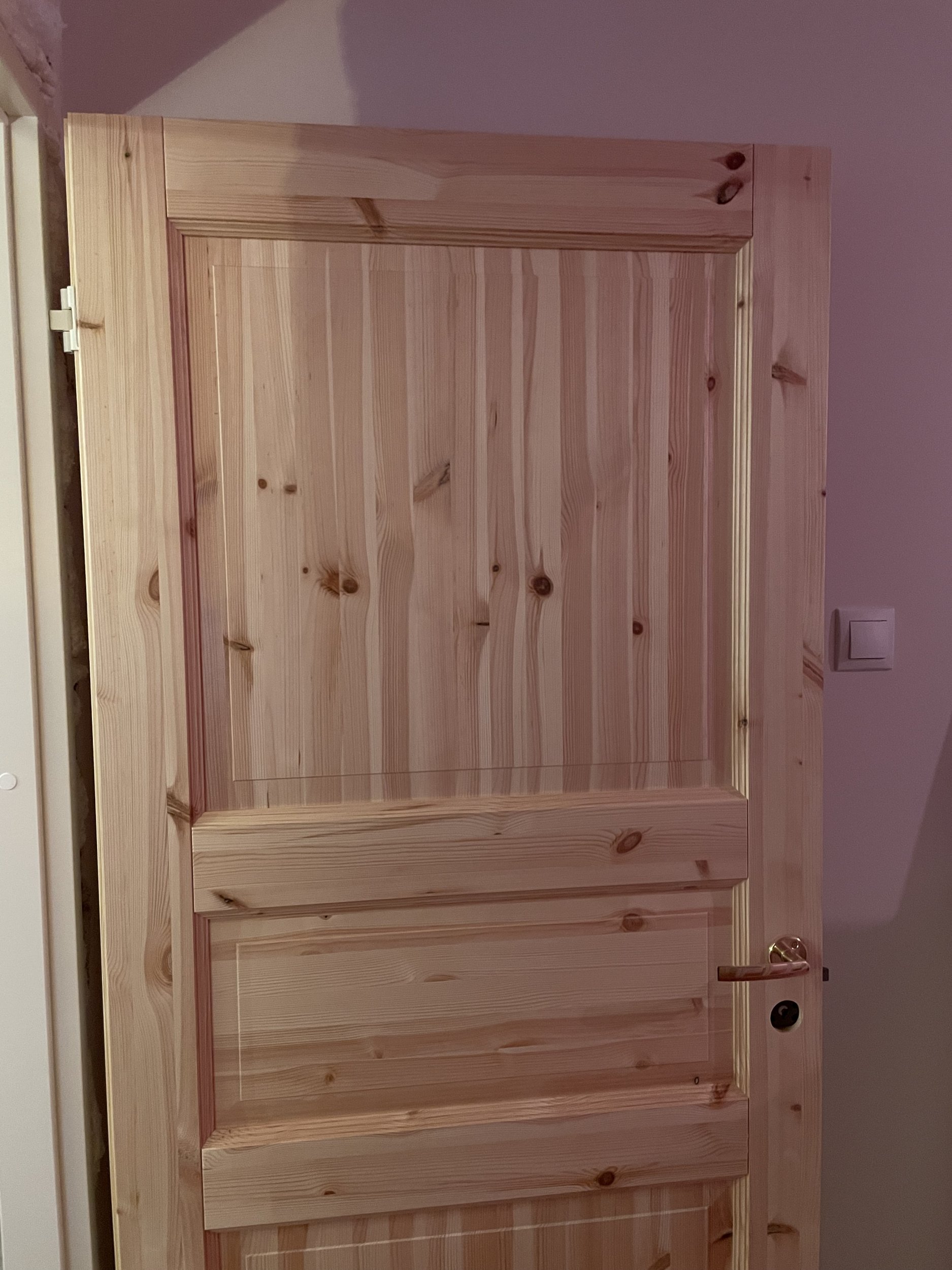 Kahe viimistlemata puidust siseukse värvimine.