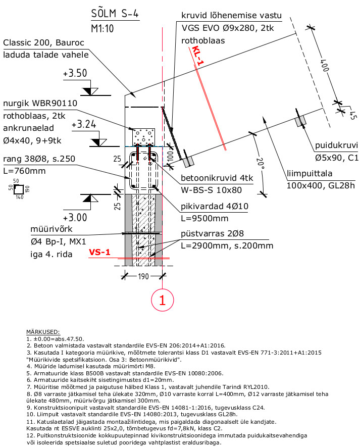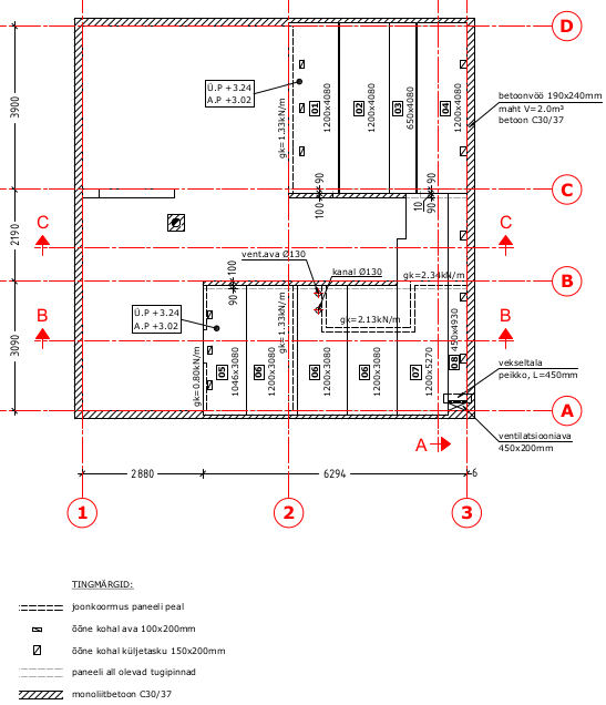 Vastavalt konstr. projektile kandvate seinte ladumine ja vahelagi, sillused, vööd.
