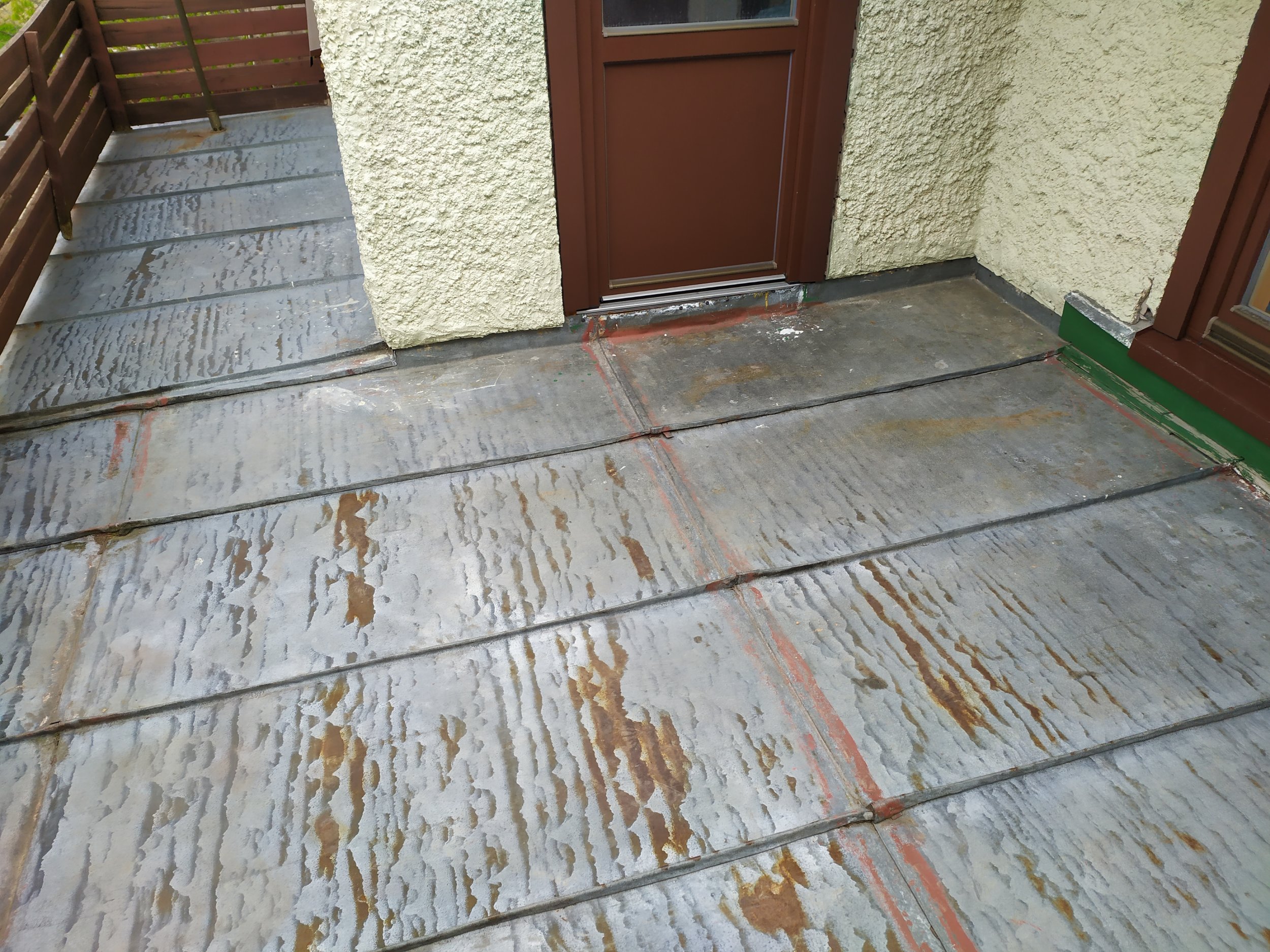 Vesi on valgunud rõduukse ja rõdu katuse ühenduskohast maja puitkonstruktsiooni vahele. Rikutud on ka rõdu all asuv veranda lagi. Vaja on parandada tekkinud kahjustused.