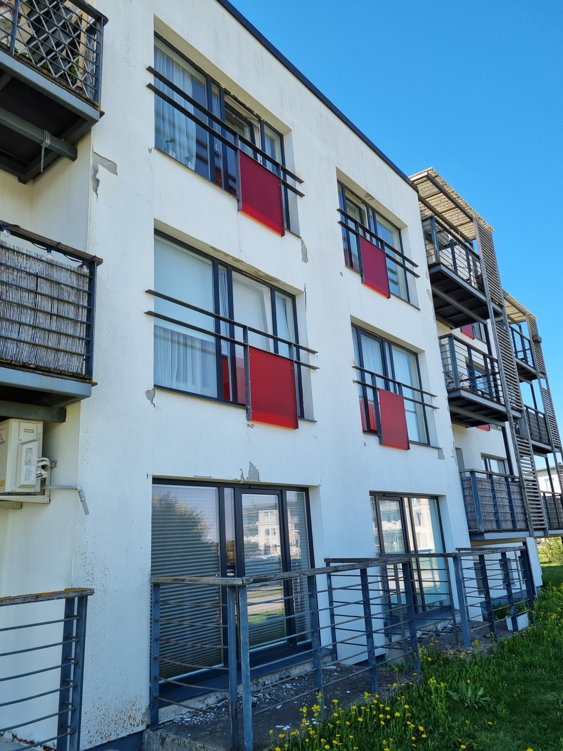 Olemasolevate rõdupiirde puitosa ja terassilaudade demonteerimine - 26 komplekti. See tähendab olemasolevate puitdetailide ja terassilaudade eemaldamist rõdudelt.