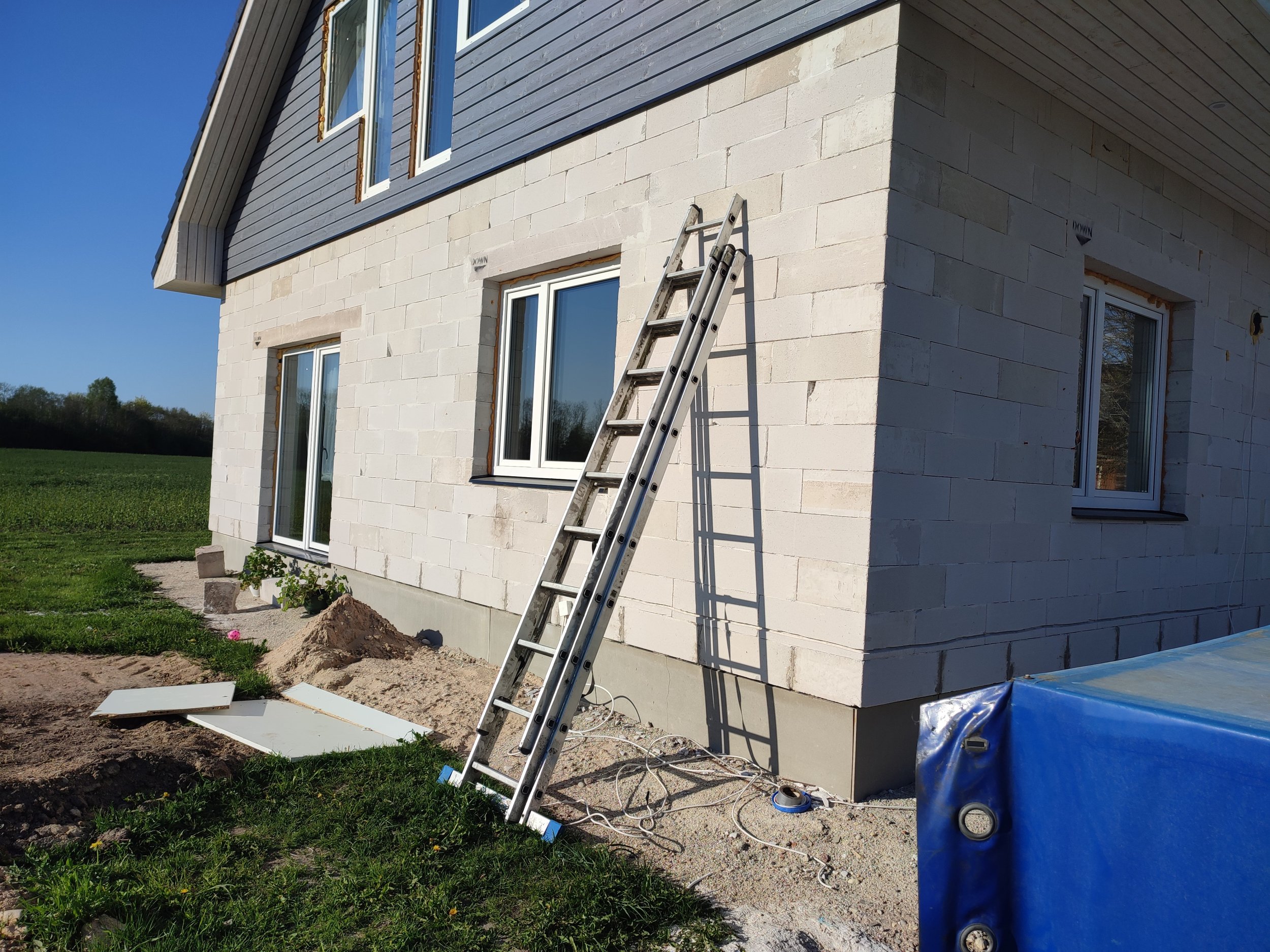 Bauroc plokist maja välisseite krohvimine, akna-ja ustepalede krohvimine/viimistlemine. Seina pinda on 107 ruutu ja palesi on 36jm laiusega 13.0cm.