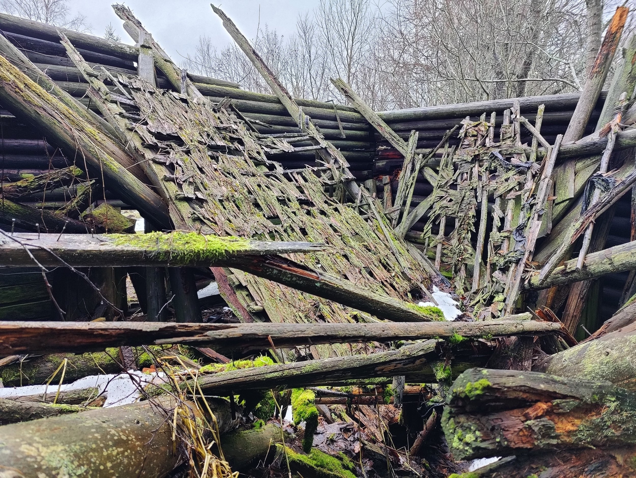 Nagu piltidelt näha on kogu asi halvas seisus - katus ja üks nurk sisse kukkunud.
