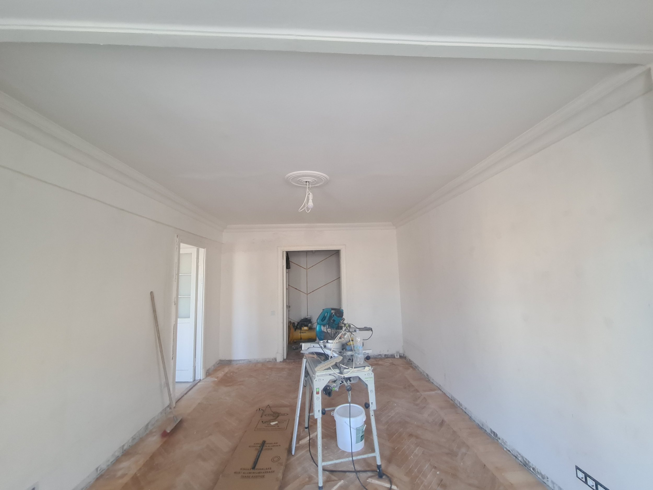 Kaks tuba, Kokku u 130m², seinad + laed viimistleda. Rohkem lihvimistöid, pahteldamist sisuliselt enam ei vaja (võibolla korrektuuriks veidikene). Seinad ja lagi kruntida+valge värviga värvida. On olemas Eskaro flat kruntvärv. Muid vahendeid pakkuda enda poolt pole.