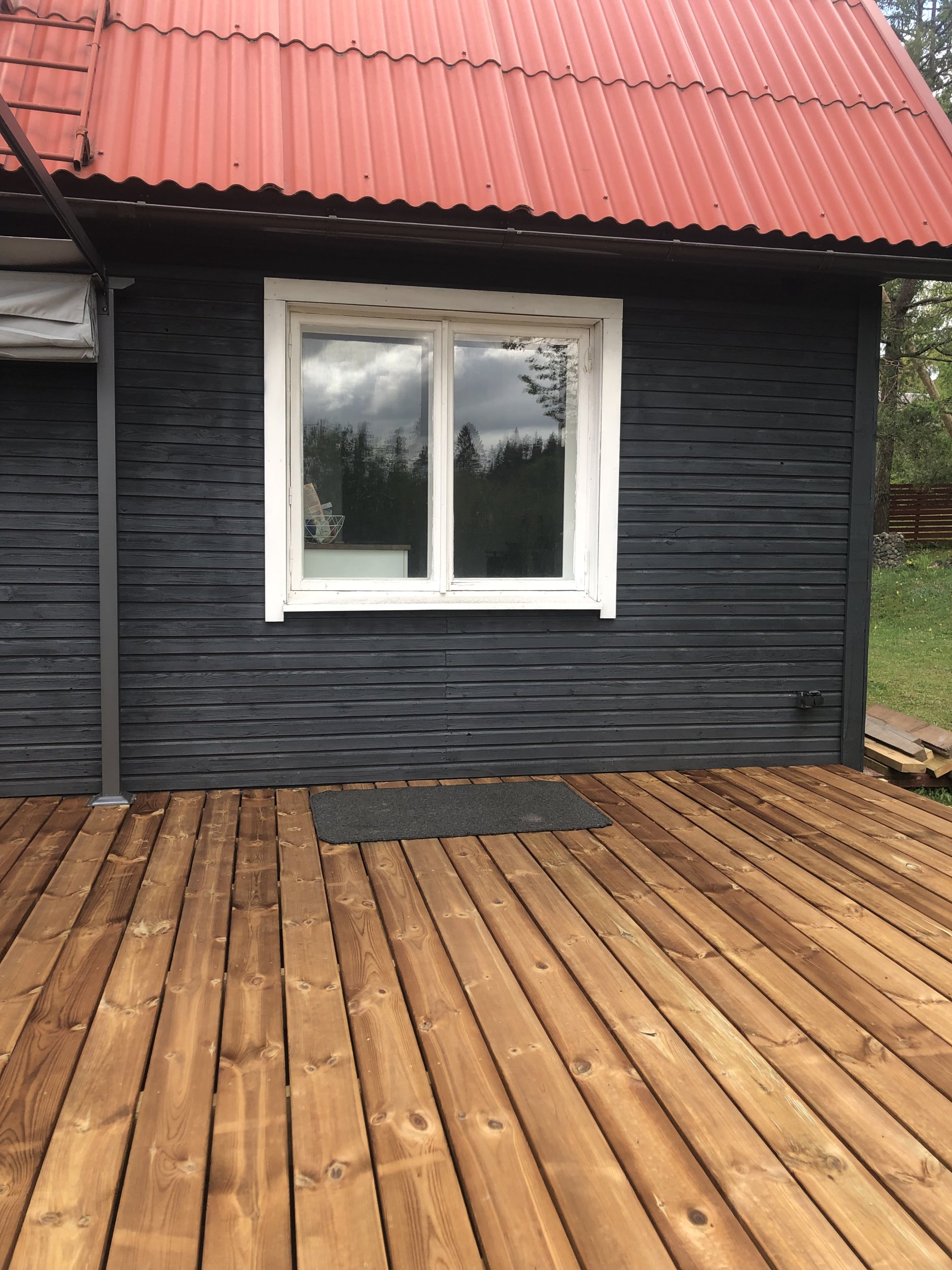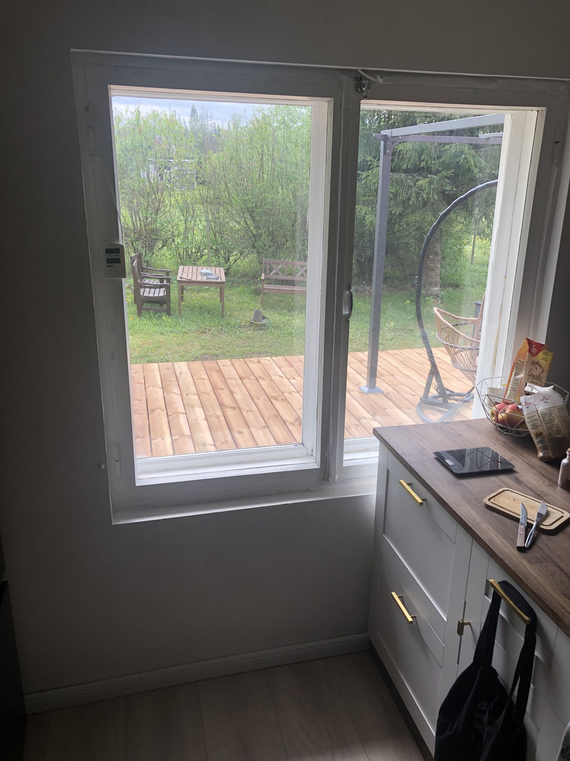 Puitkarkassiga majale on vaja akna asemele paigaldada terrassiuks, viimistleda sisemised uksepõsed. Aken asub esimesel korrusel, väljapool on terrass, seega ilmselt turnima ei pea.