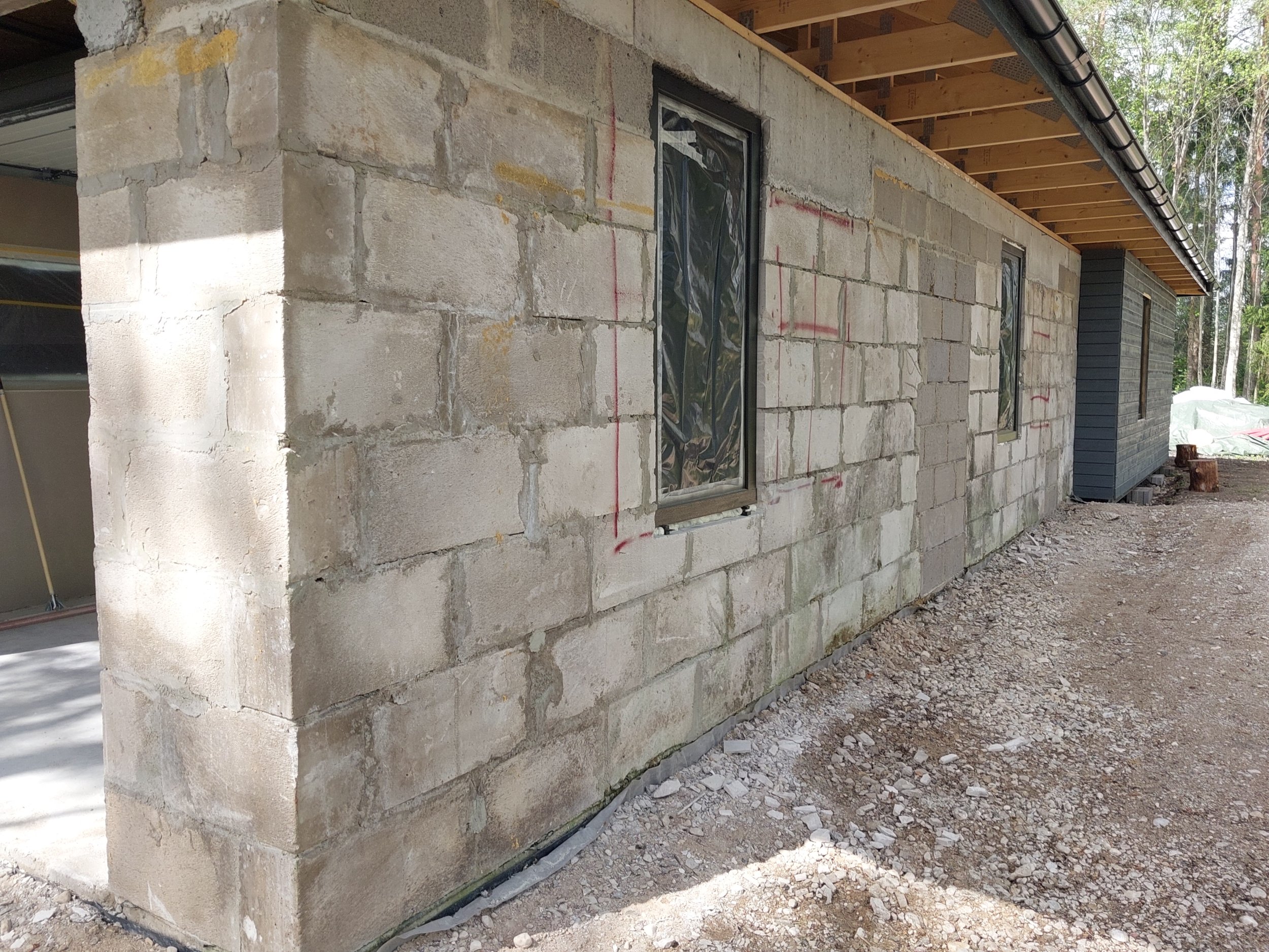 Tuhaplokist laotud seinte tasandamine ja krohvimine. Viie akna ja kahe uksepale viimistlemine. Viimistluskrohviga viimistlemine. Pinda kokku ca 55m2.