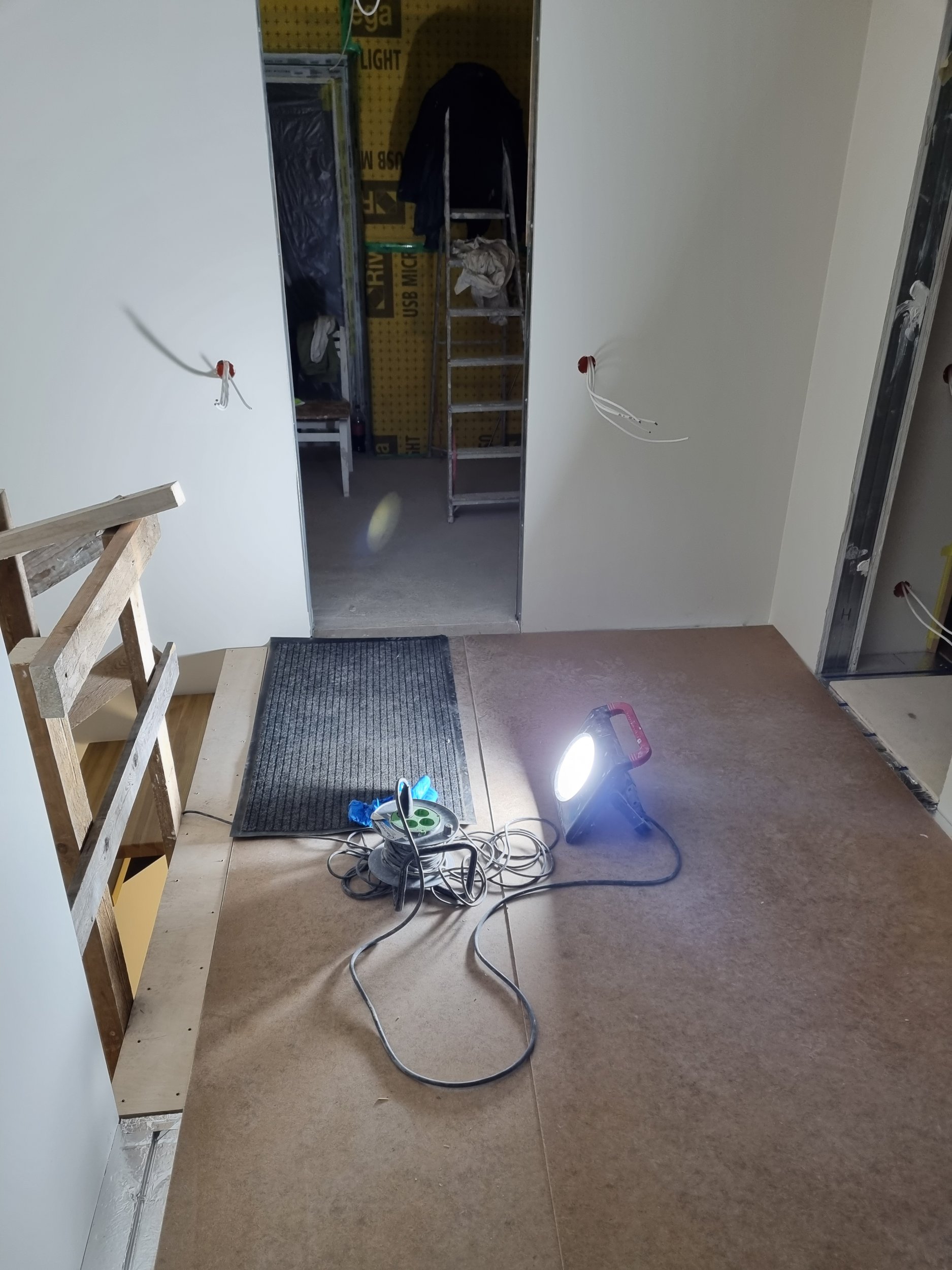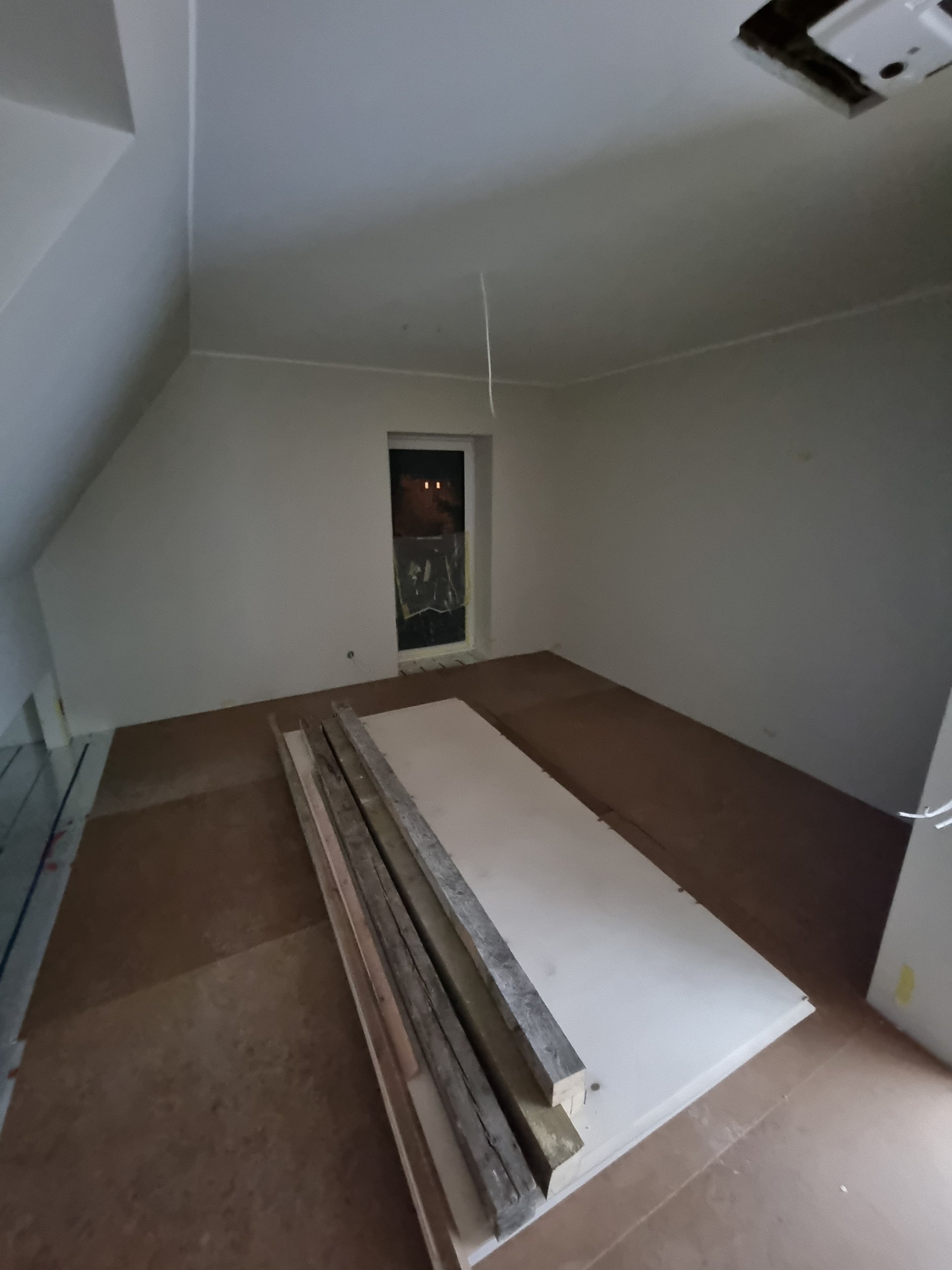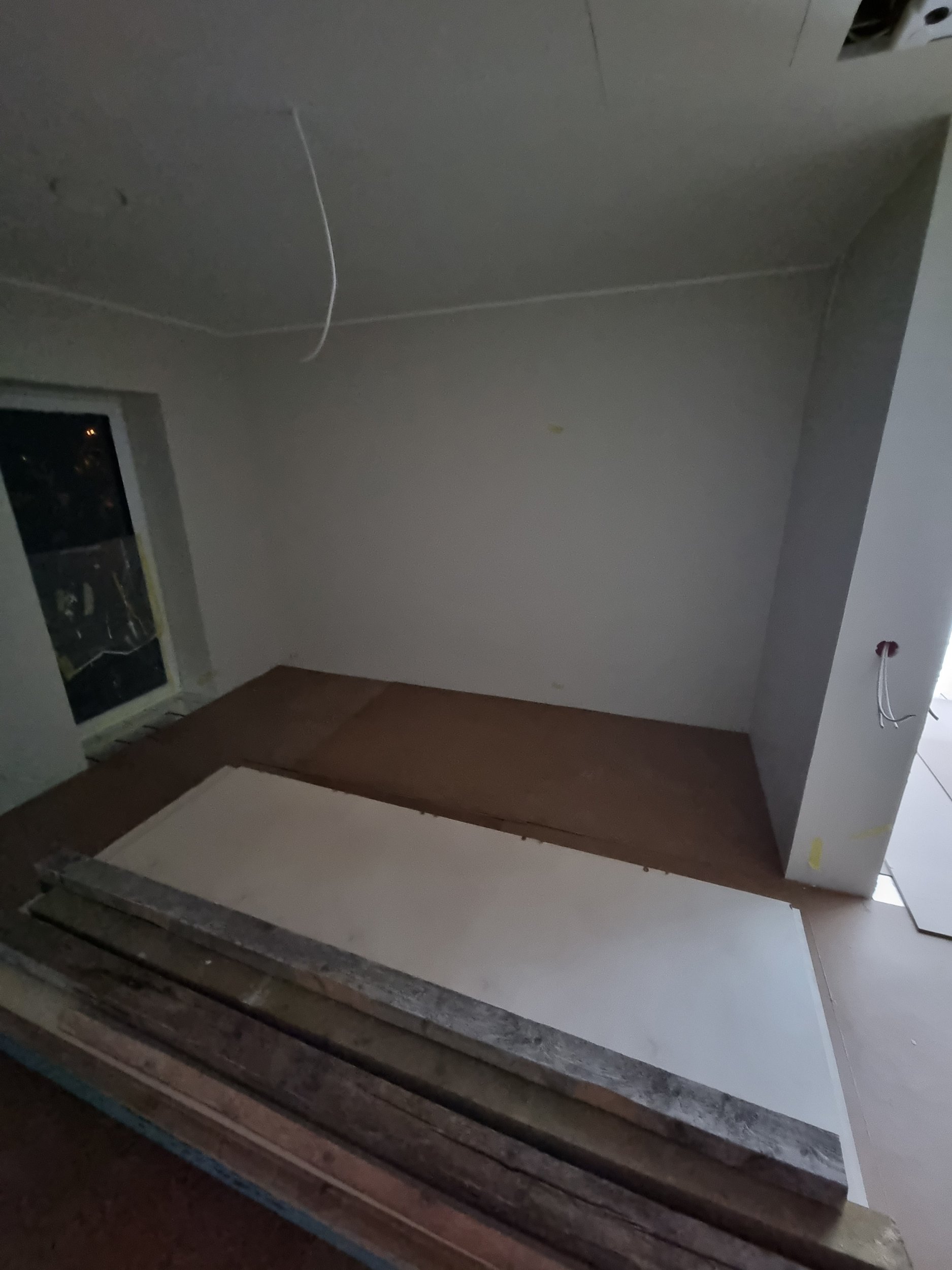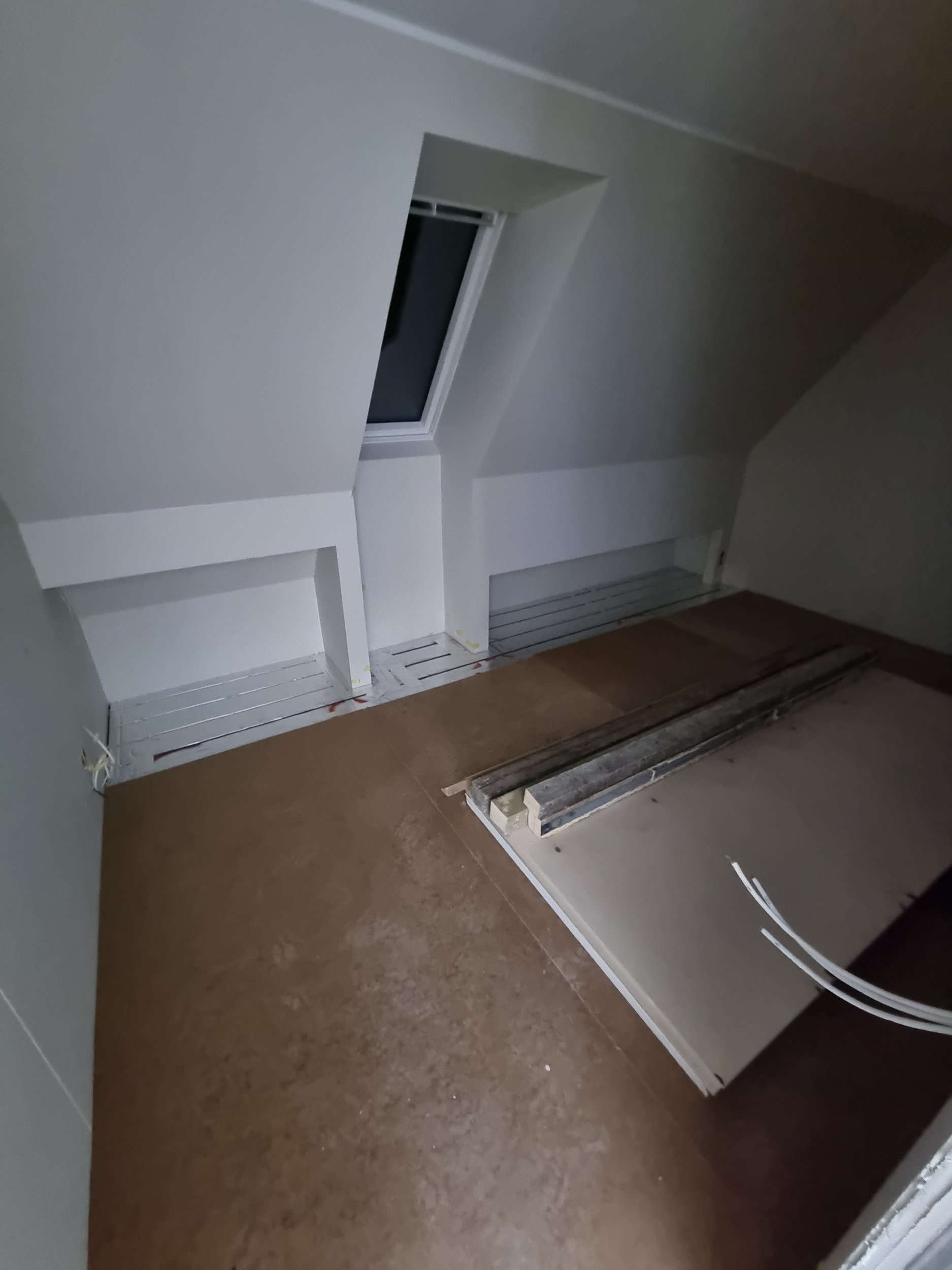 Parkett paigaldatakse kolme magamistuppa ja teise korruse esikusse. Vannituba ei ole töömahu sees. Magamistubades on ka kaldlagede alused niššid (piltidelt nähtavad). Tööde tegemise ajaks on ruumid puhastatud, kõik põrandad kaetud Novasound membraaniga, parkett ja liimitünnid teisele korrusele veetud.