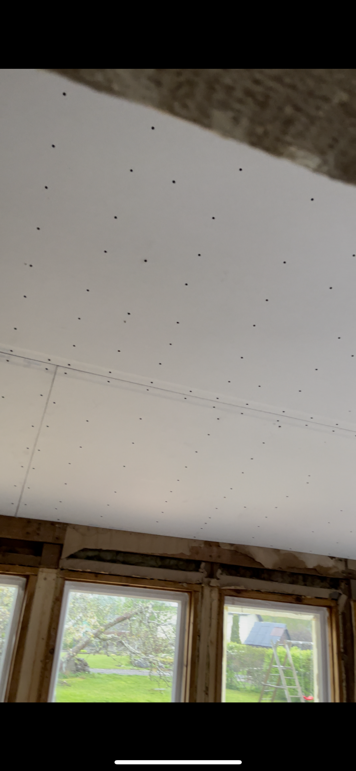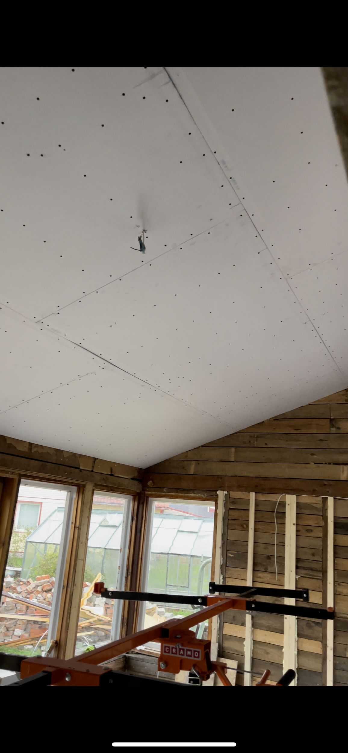 Lagi on ca 45kraadise kalde all ja kõrgeim punkt on u 3.3m, madalaim koht 2.20m. Kuna laes on kips otse vanale puitlaele paigaldatud, siis on seal kruve rohkem sisse lastud.