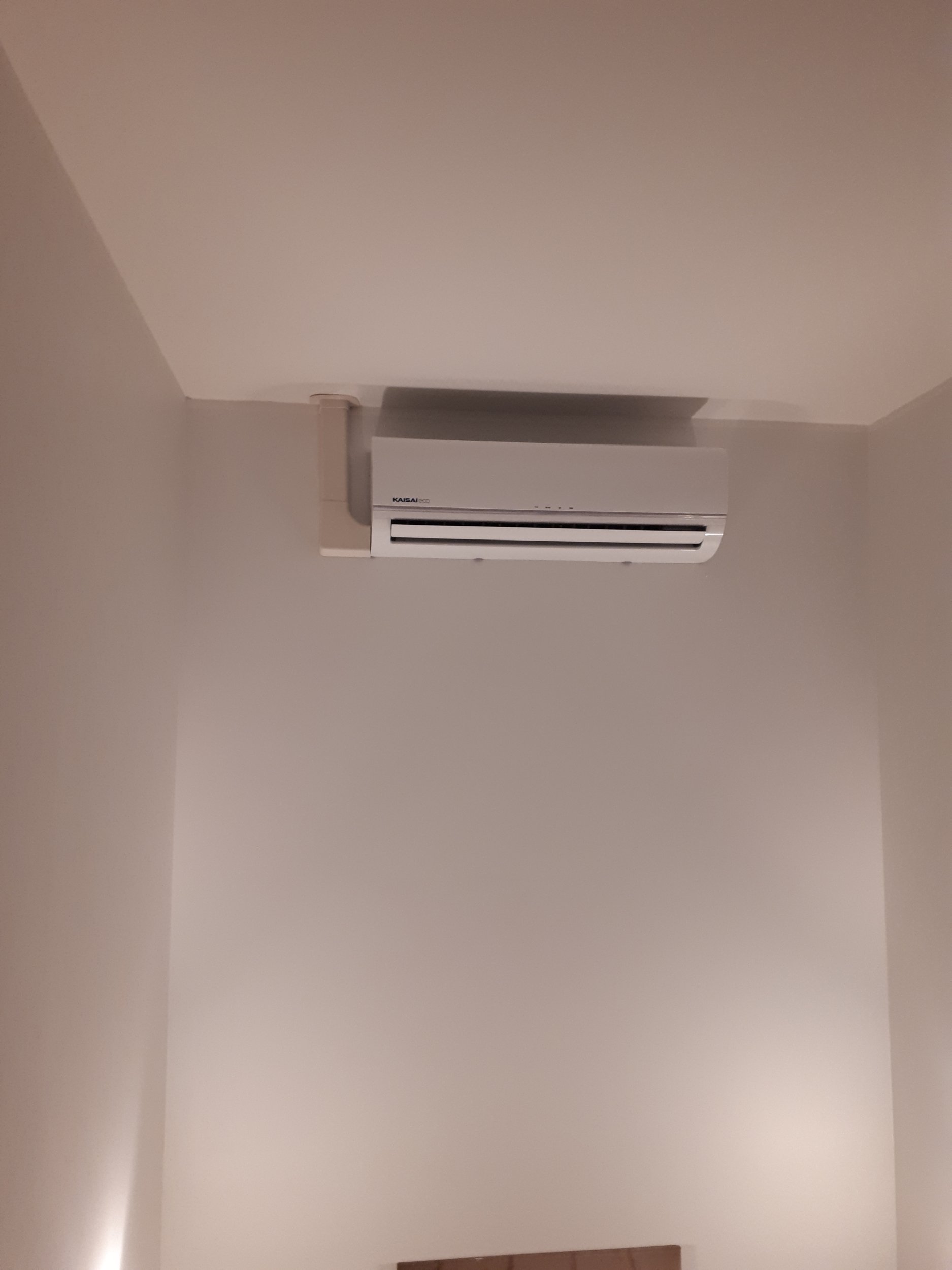 Ülemisele korrusele trepihalli paigaldatud õhksoojuspumba ühendamine elektrivõrku (kaabli vedamine läbi seina alla korrusele elektrikilpi)