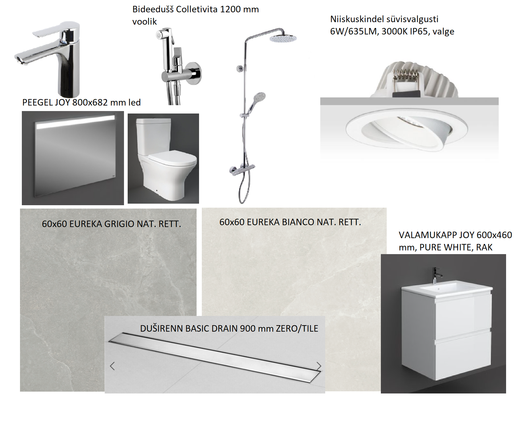 Materjal tellija poolt: plaadid, vuuk, santehnika, klaas, valgustid, lülitid-pistikud.