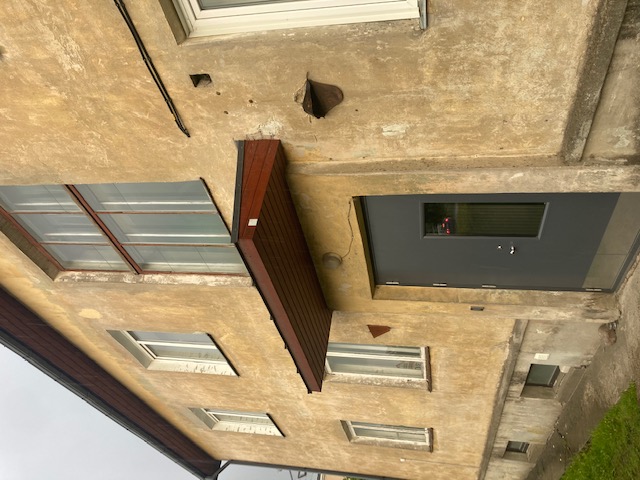 Uue varikatuse katusematerjaliks on tumehall (RR23) klassikprofiil. Paigaldama peab ka lisaplekid: stardiplekk, ääreplekid, varikatuse. seina liiteplekk. Seina liitepleki ülemine serv lõigata krohvi sisse 15mm ning tihendada polümeermassiga.