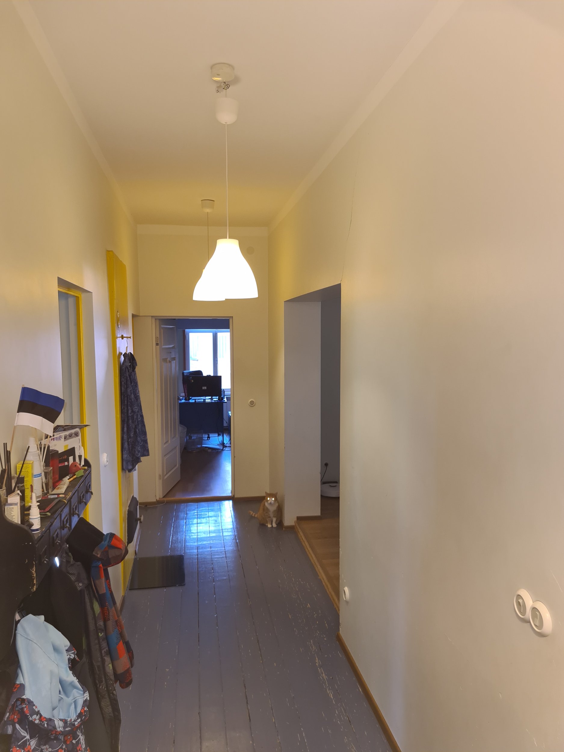 Pahteldada seintes tekkinud praod (puitmaja vajumisest tekkinud 10a jooksul), lihvida ja üle värvida. Kokku on 8 m2 esikut pluss esikust elutuppa viivad seina osad. Toa kõrgus 2900mm.