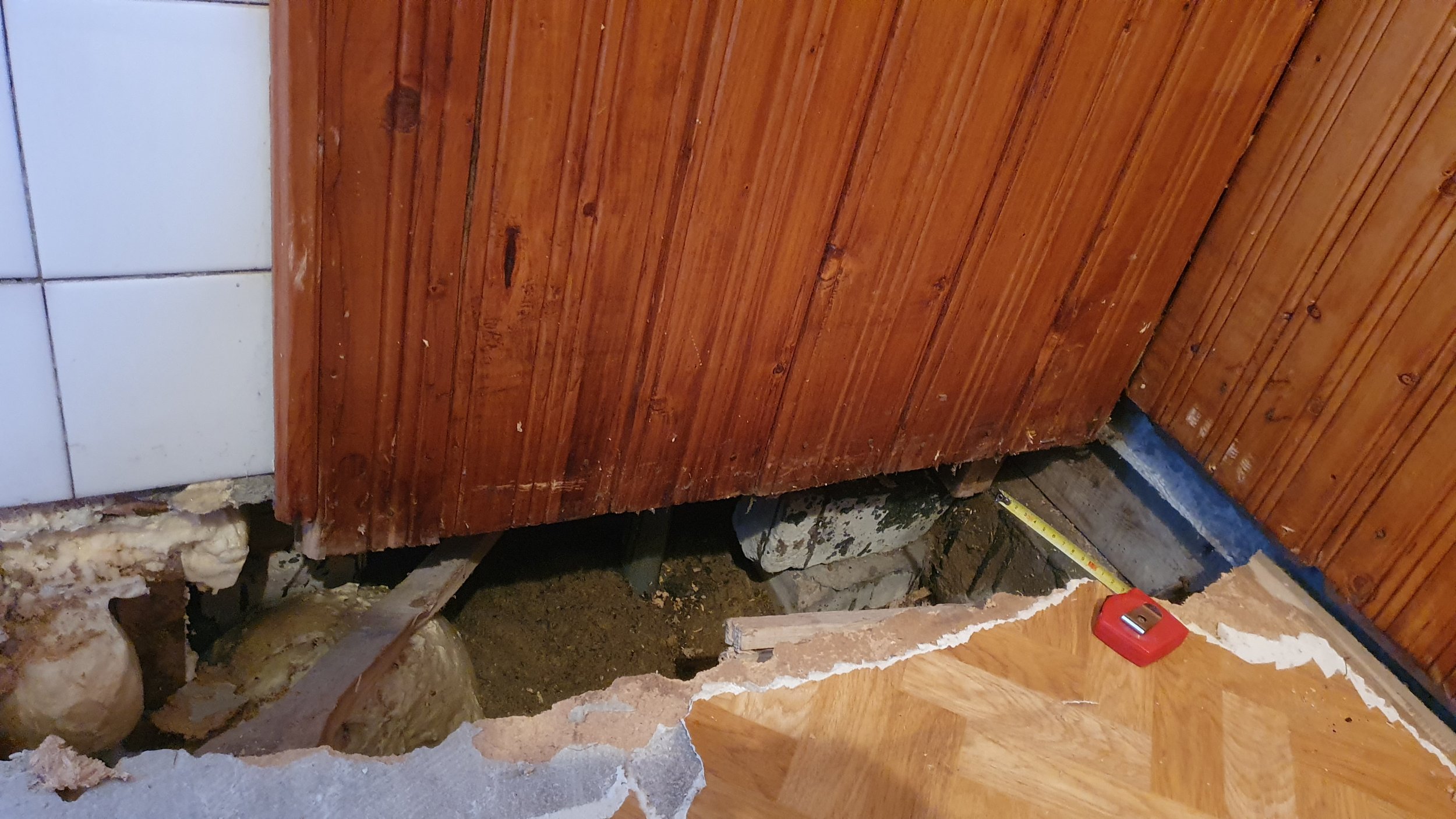 Osa põrandast on eemaldatud eks saab sissevaadata . On vaja tõsta ja kinnitada vajeseina, vahetada põrandskate ja vaadata kõik üle.