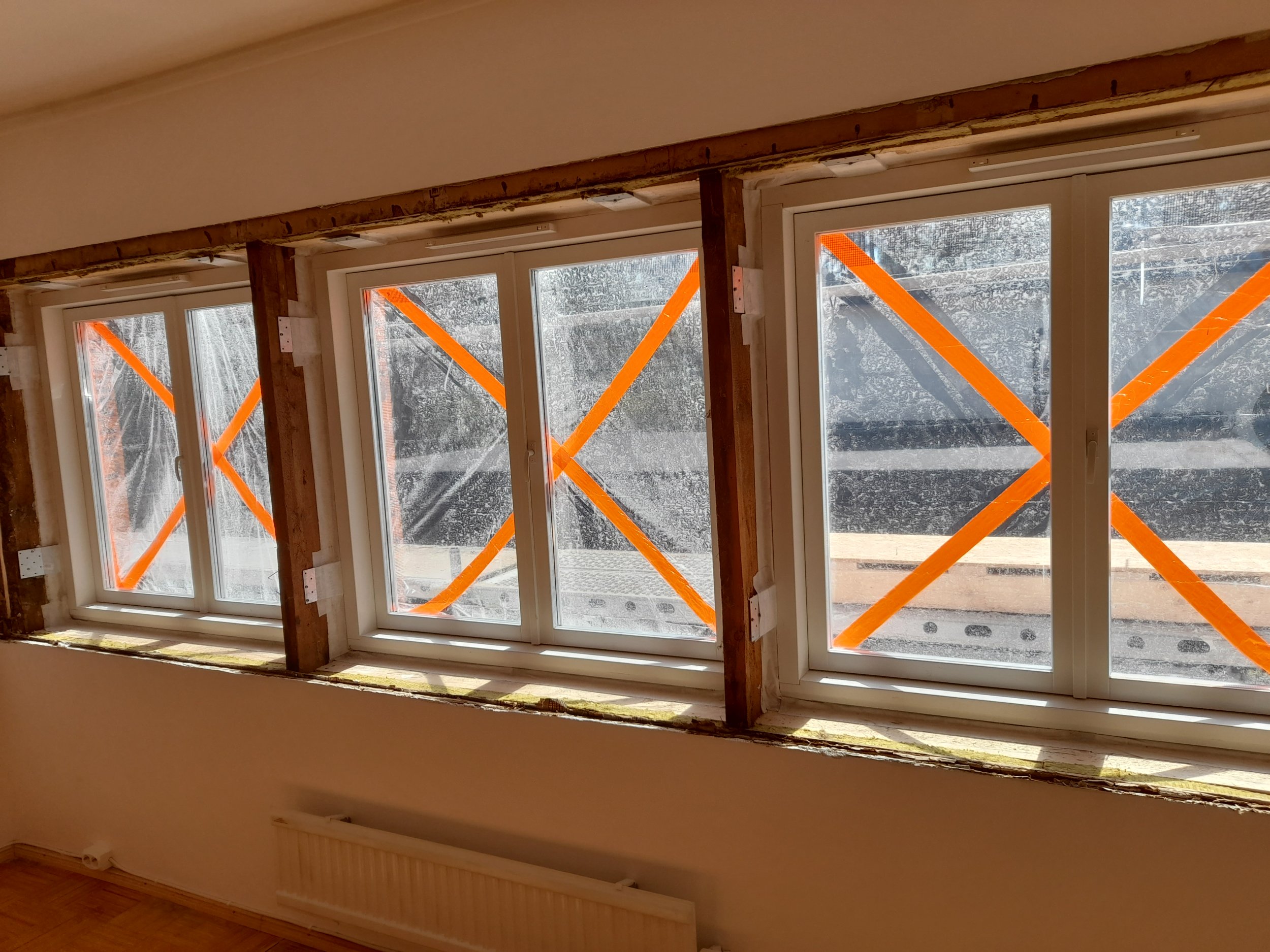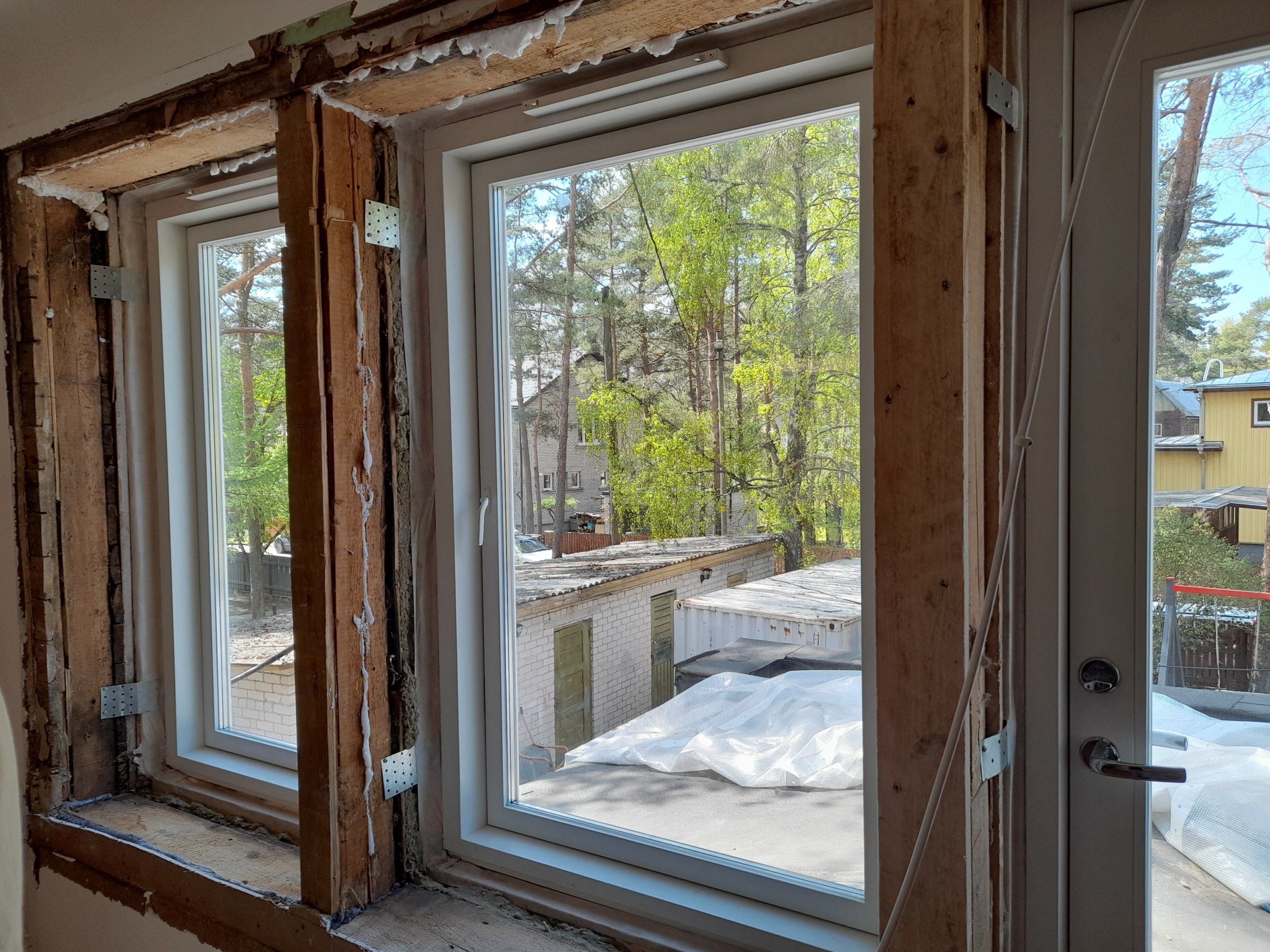 Korter puitmajas Nõmmel, pandud äsja uued puitaknad, akna aurutõkketeip.