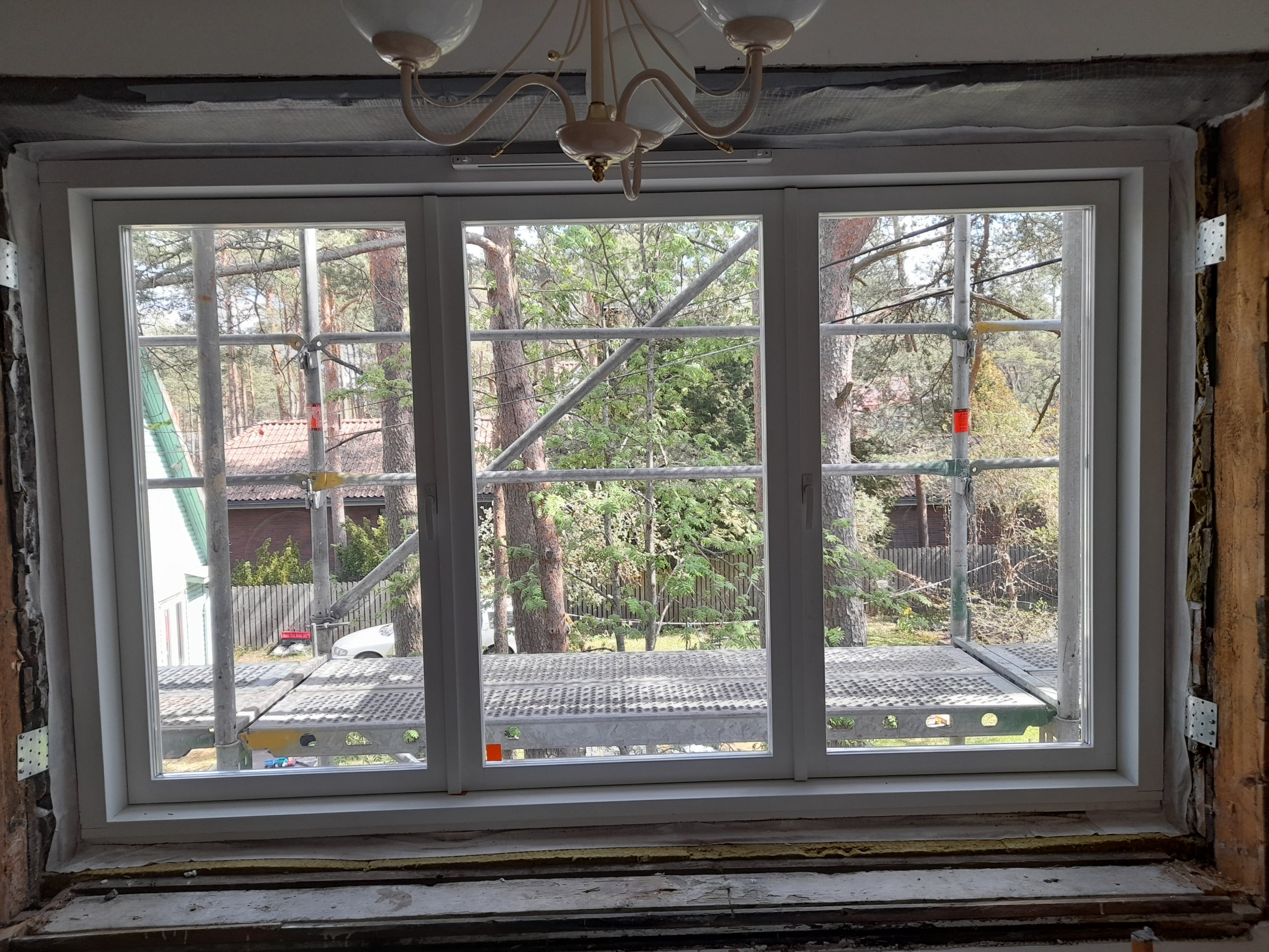 1. Puidust aknalaudade paigaldamine ning ümbruse viimistlus. Kaks aknalauda üle 4 meetri pikkused (magamistubades), köögis 212 cm, elutoas 100 ja 117 cm (kokku 5 aknalauda).