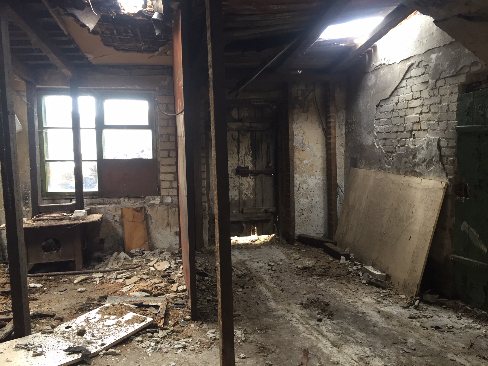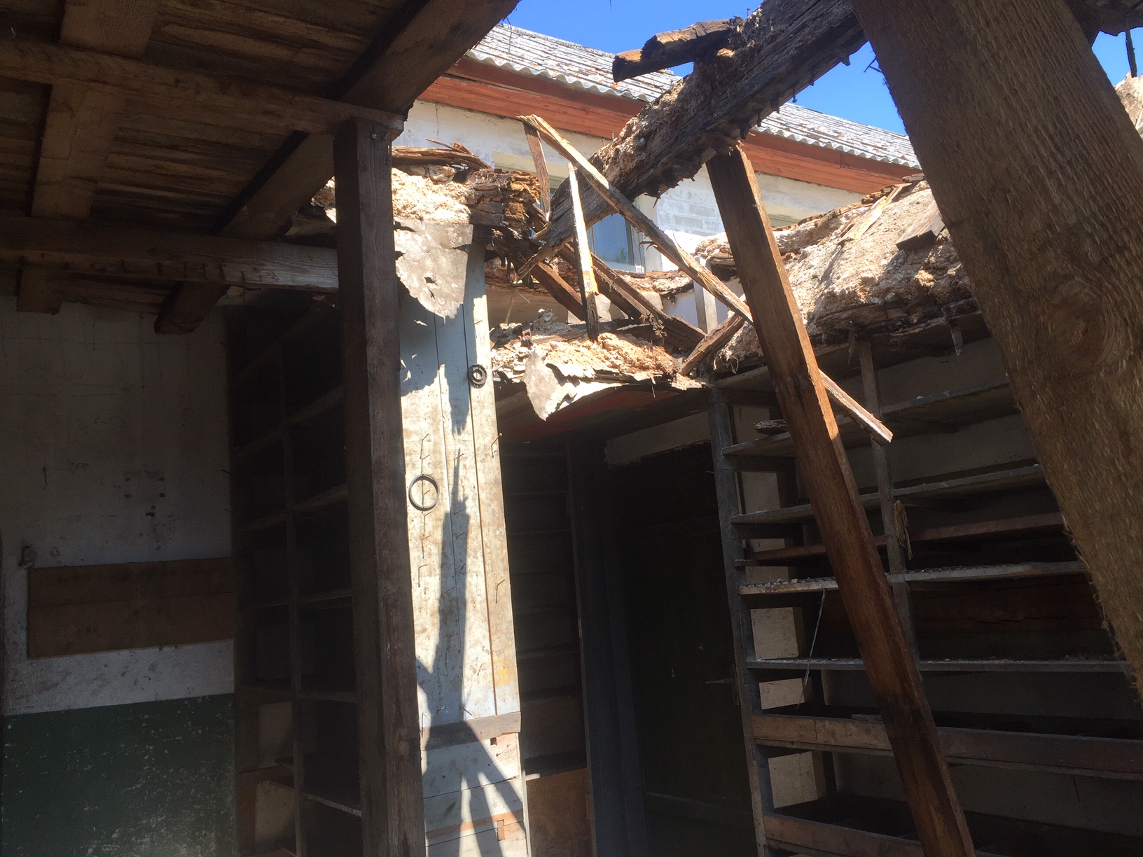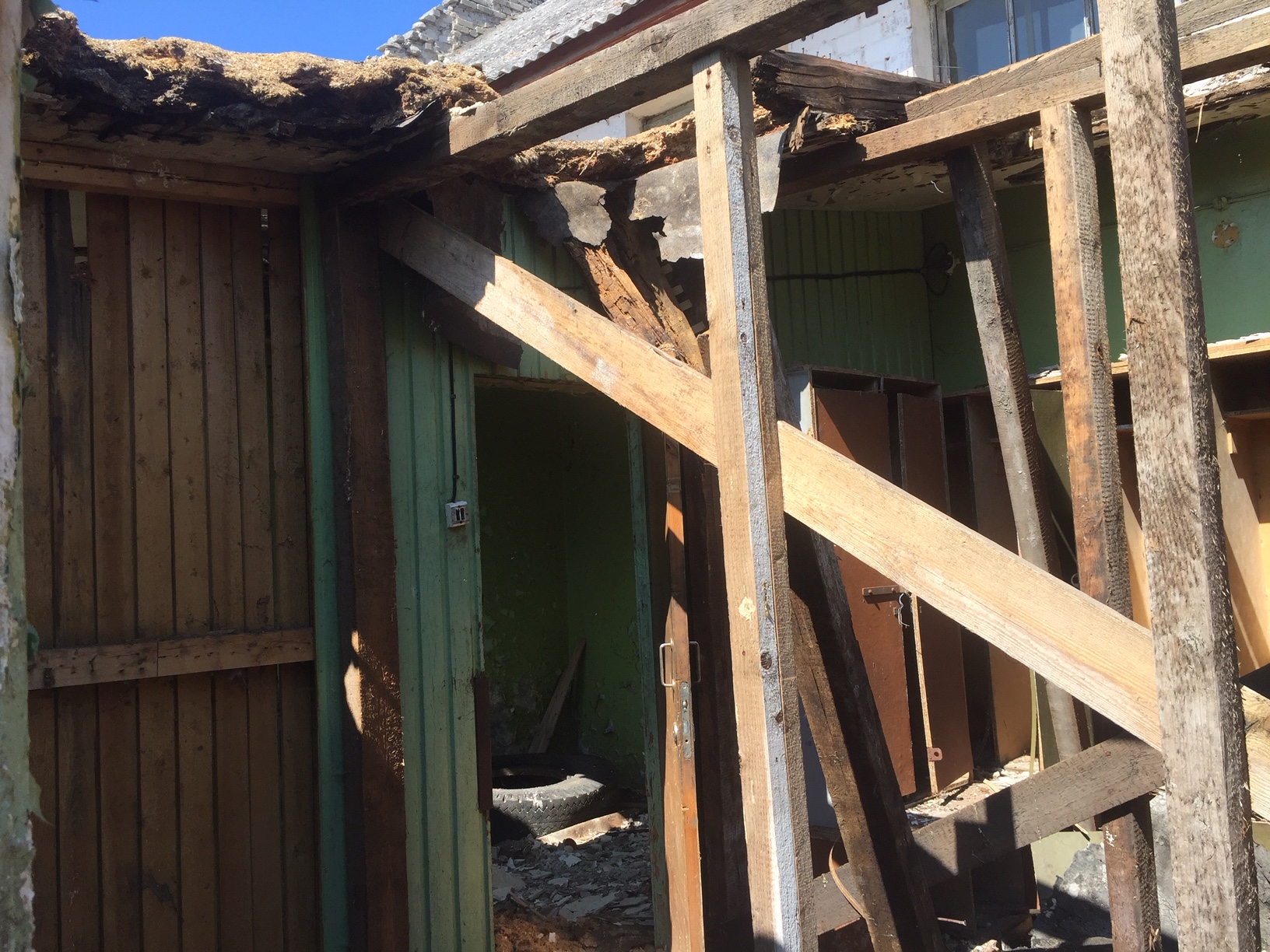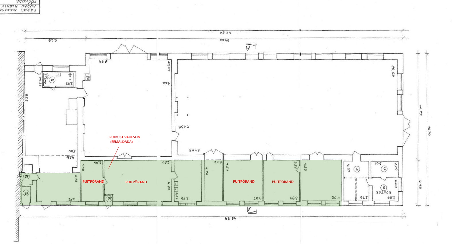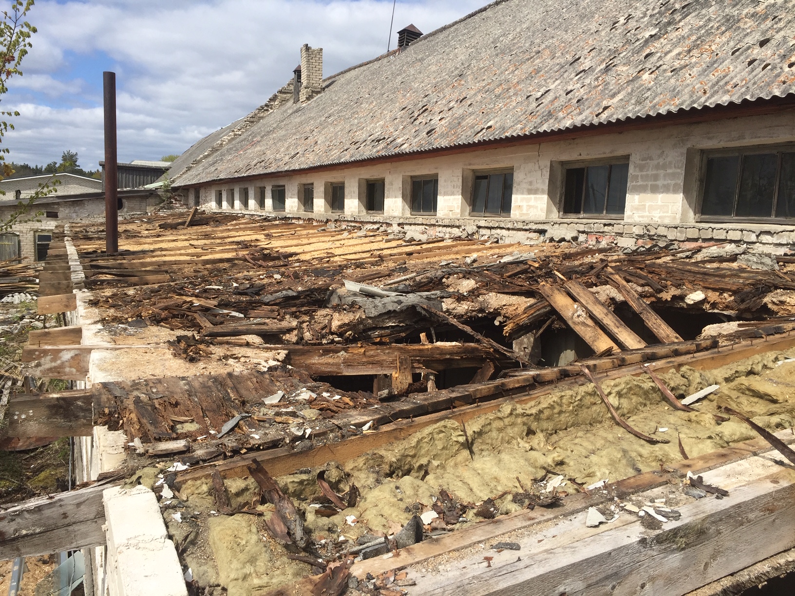 Külghoone puitosade lammutus. Maha on juba võetud eterniit, tõrvapapp ja pealmine laudis. Sisemine lagi on krohvitud puitsõrestikule ja on suuremalt jaolt juba sisse varisenud. Lae soojustusmaterjal on saepuru. Ühel pildil näha ka klaasvilla, aga seda on kasutatud osaliselt lihtsalt parnaduseks mõne koha peal. Laudpõrand samuti eemaldada betoonini (asukoht märgitud joonisel), mujal ruumides betoon. Toestustalad ja uuem materjal säilitada. Aknad on praeguseks hetkeks juba eemaldatud. Võib teha hiljem pakkumise ka radiaatorite ja torustiku ( vanaraud) utiliseerimiseks. Hoonele on kõvakattega pinnas kogu ulatuses ja hea ligipääs.