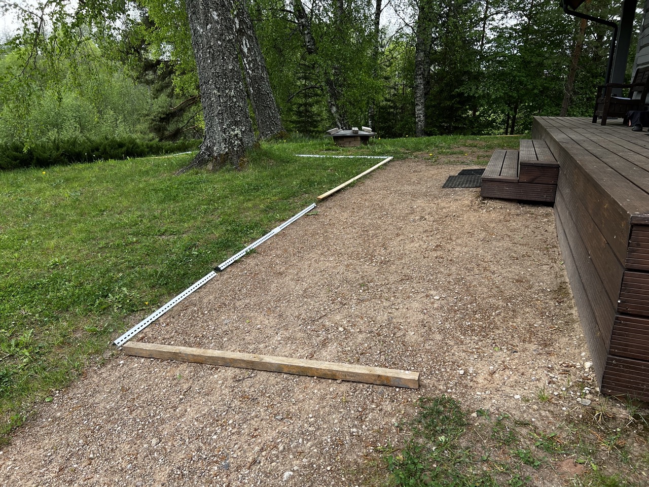 Plats asub loodusliku kaldega alal ehk nõlvapoolne osa vajab ca 45cm kruusaga tõstmist.