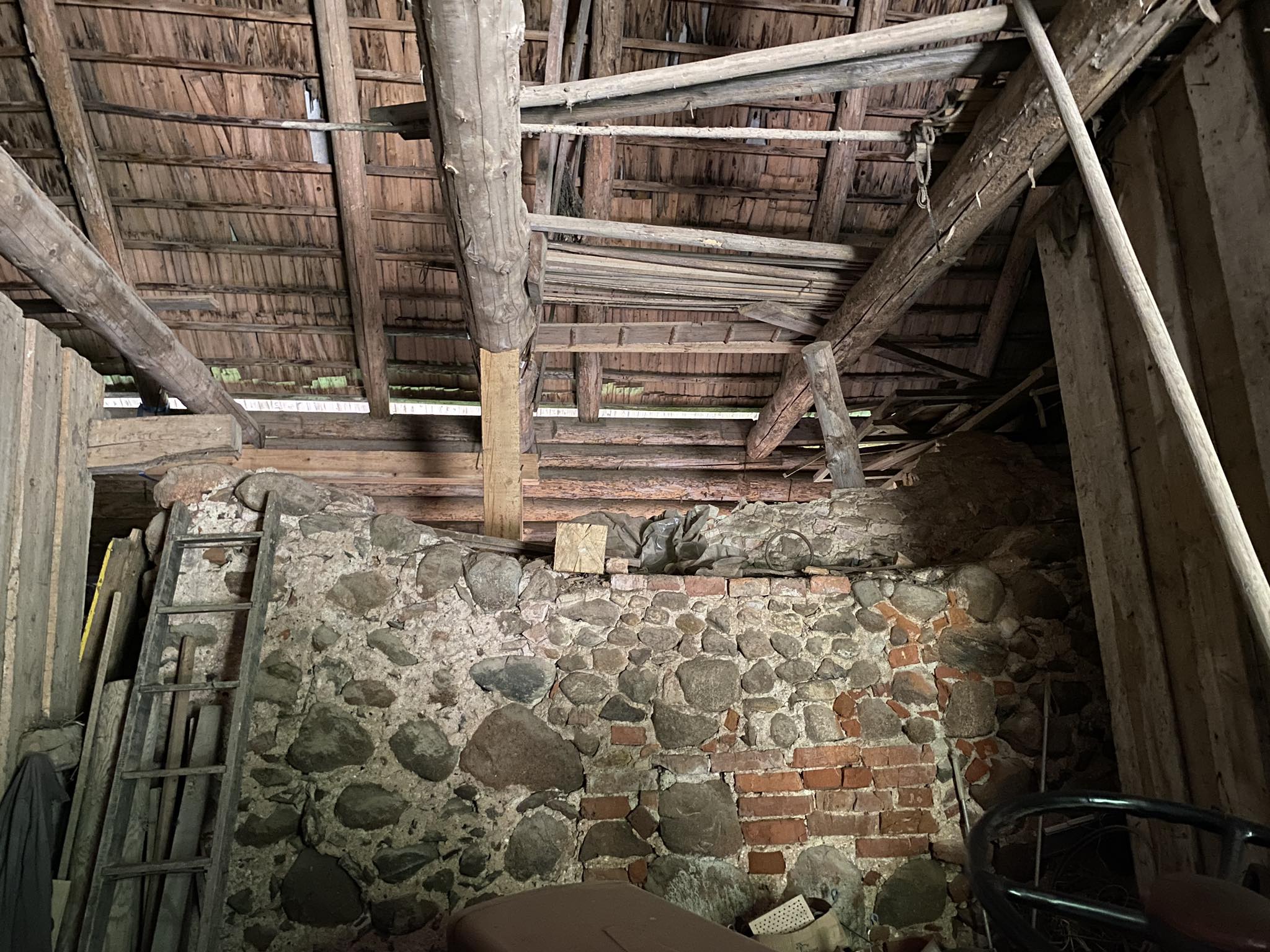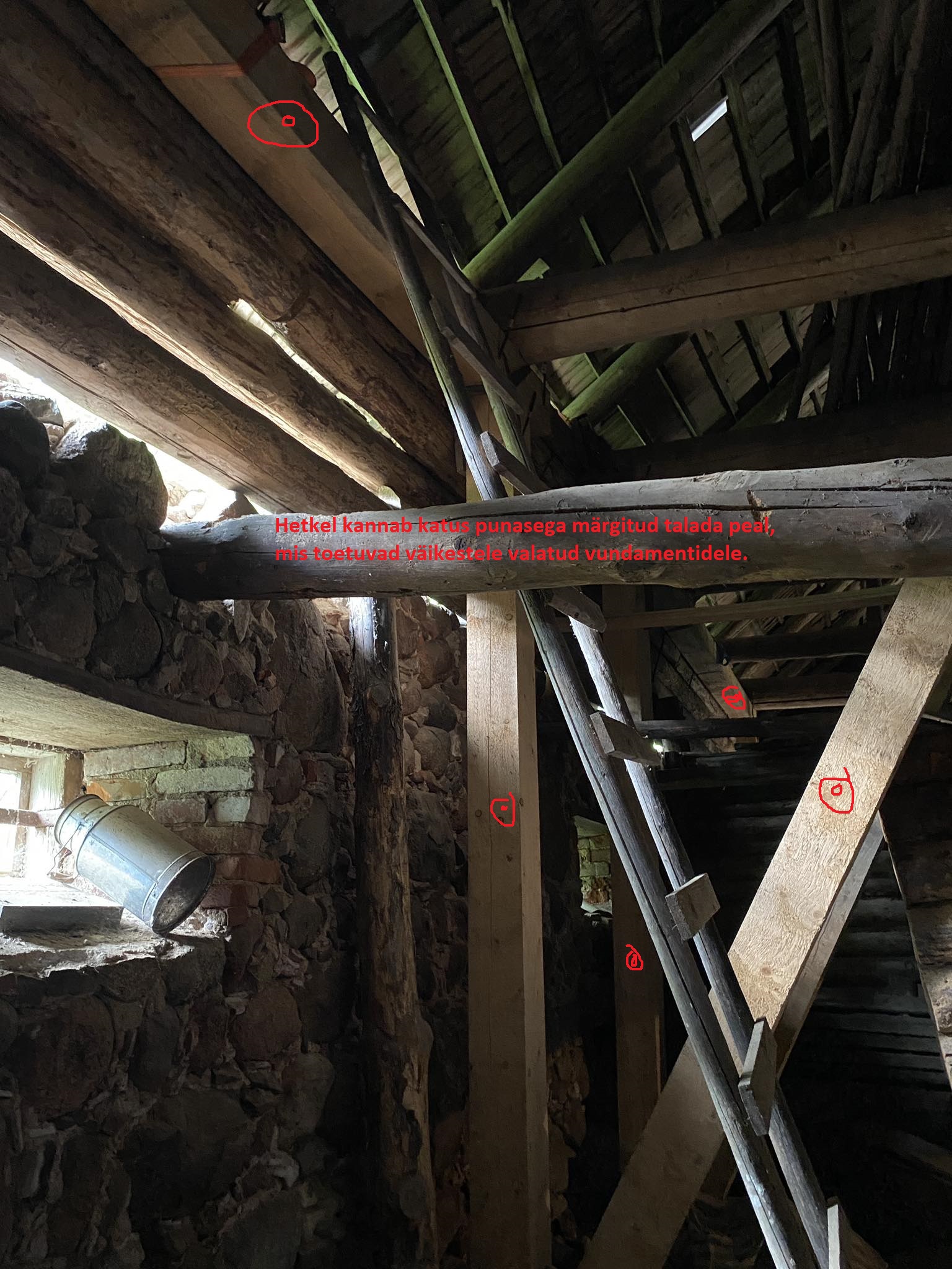 Kui see töö hästi sujub on kõrval kohe veel üks töö ootamas - maakivist majakarbile tuleb müüri peale valada betoonvöö ning ehitada nullist üles uus katus.