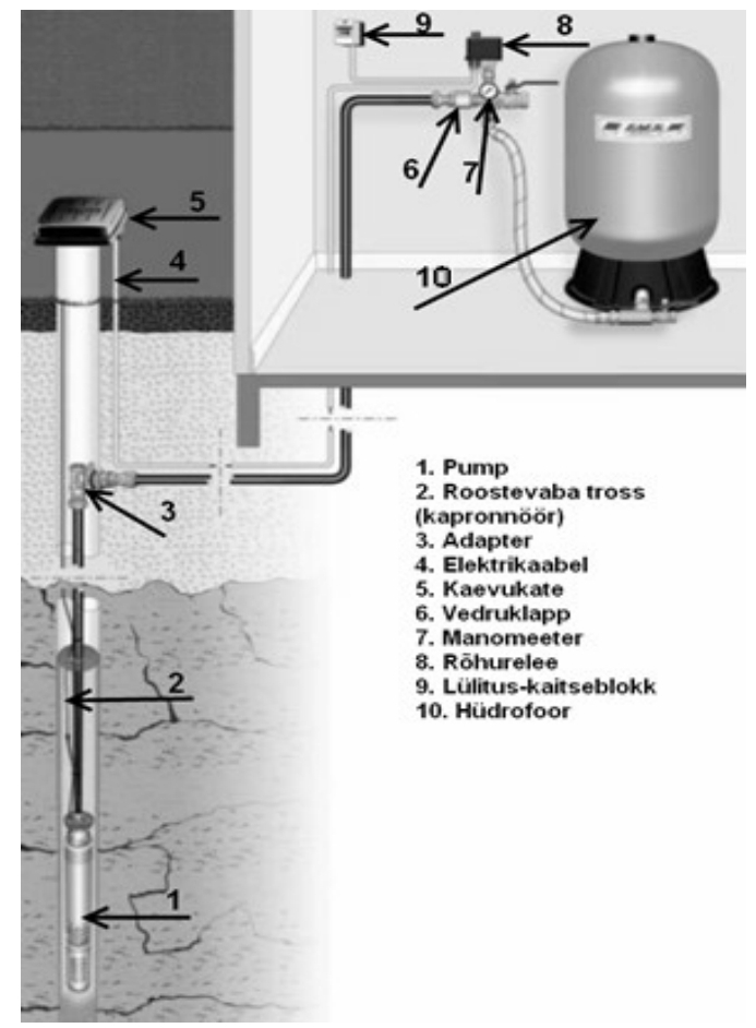 Liivkaindla pumba tarne ja paigaldus. hoonesisese veesõlme täislahendus, veetrassi rajamine hooneni, liitmikud ja tööd.