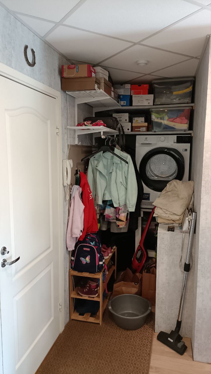 Paigutada uks. Mõõdud on 114x242. Panna kinni ülejäänud pindala valgete puitpliitidega.