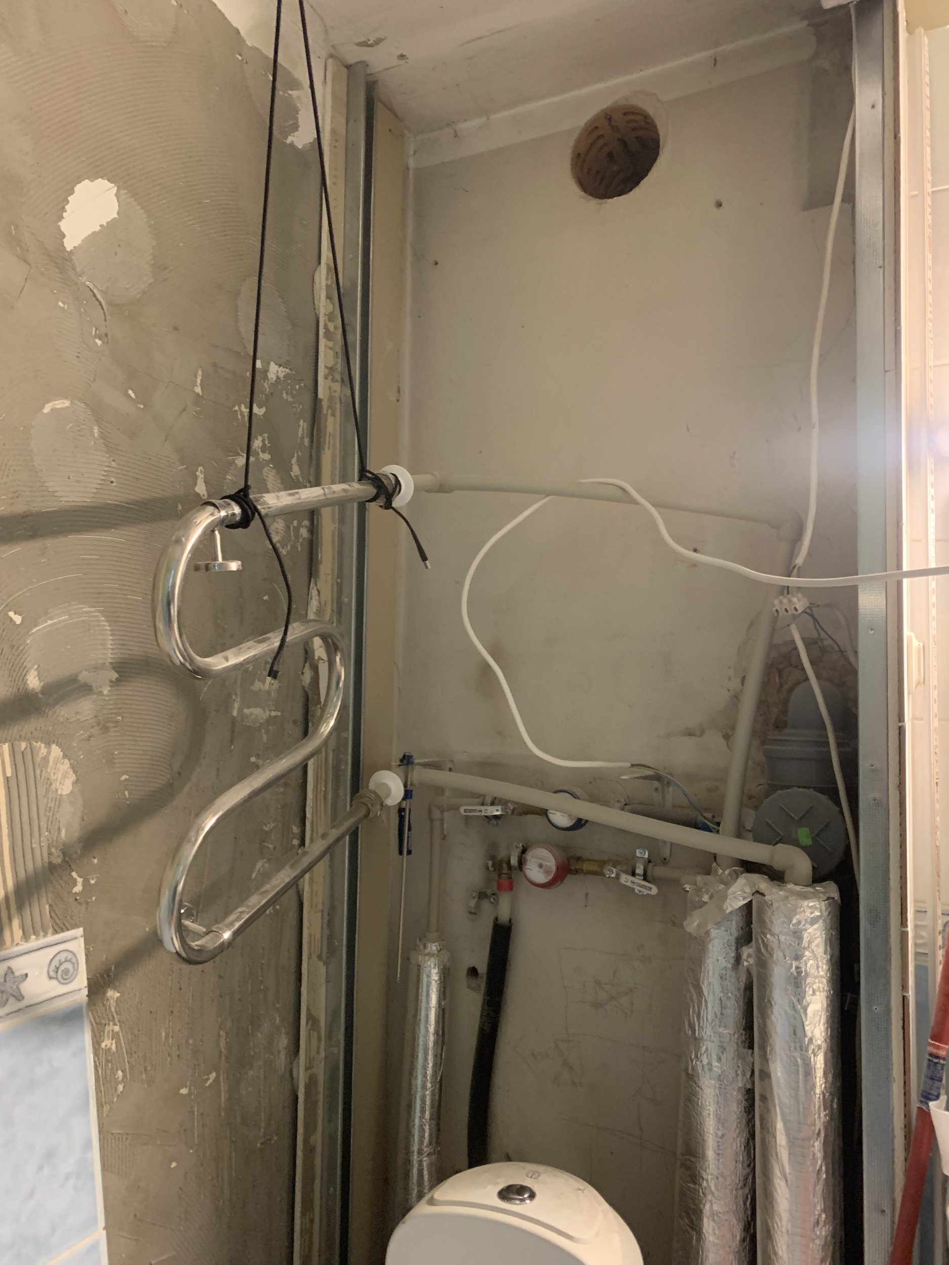 Olemasoleva rärtikukuivati vahetus uue vastu ning torude ümbertegemine, tegemist on tarbevee süsteemi ühendatud rätikukuivatiga