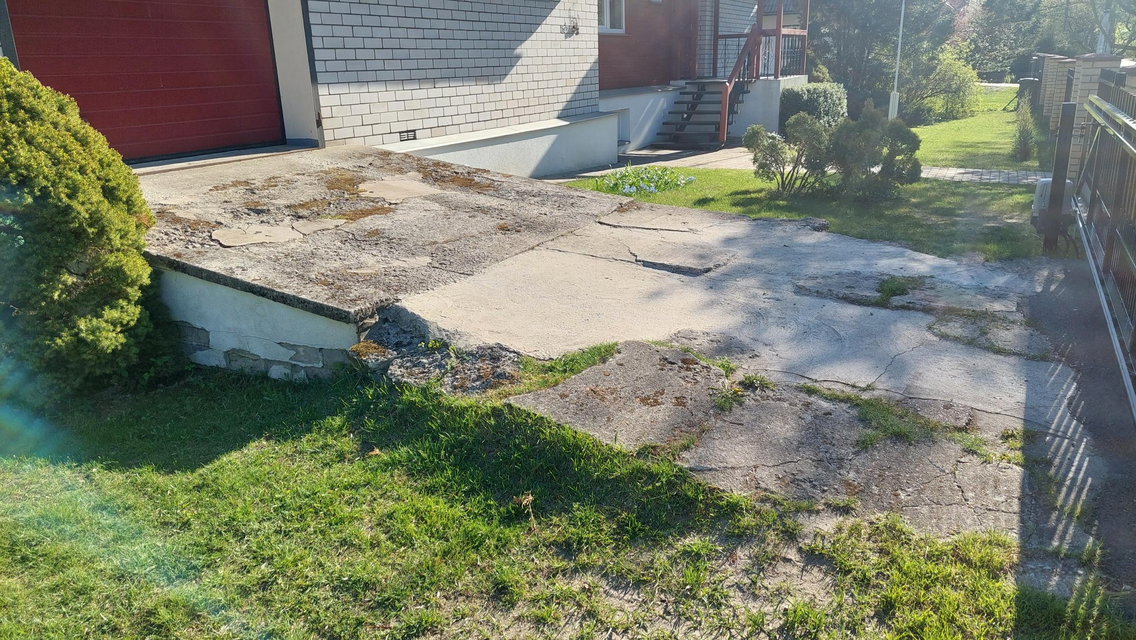- Katkise pealmise betooniosa eemaldamine (4000 (3300)x6000x80) ja utiliseerimine. Laotud seinad ja täide jäävad uue betooni sisse ja alla