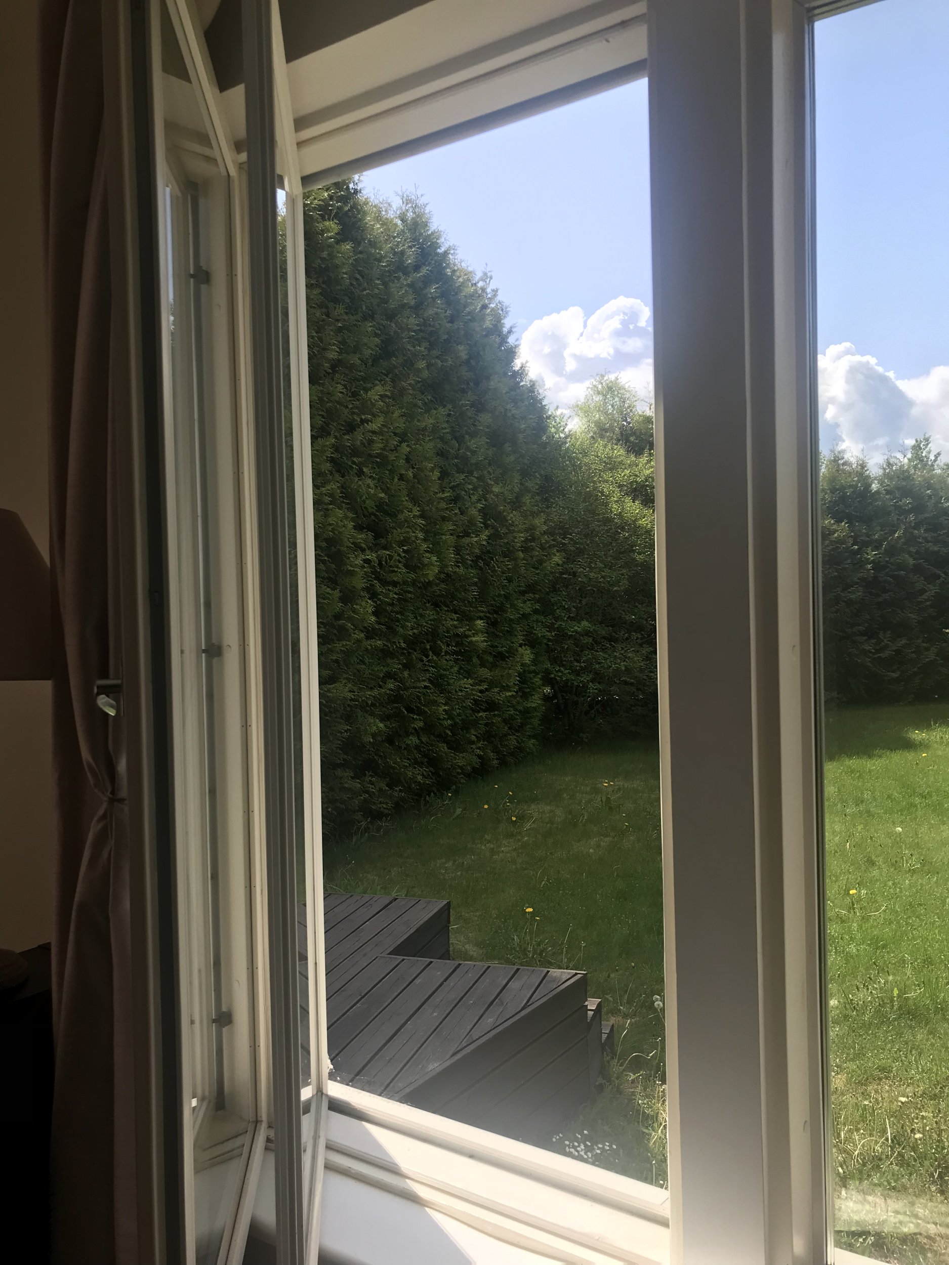 Oleks vaja ehitada esimesel korrusel asuvale sissepoole avanevale aknale väljapoole tugev raamil tuulutusvõrk, et saaks suvel tuba tuulutada ja kass ei pääseks toast välja. Töö asub Kloostrimetsas, Tallinnas.