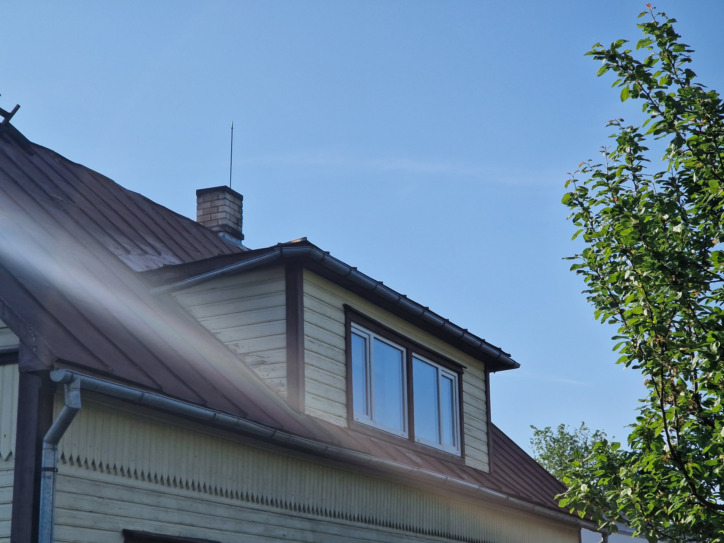 Katuse väljaehituse nurkadest tungib lumesulavesi mööda lage esimesele korrusele. Katusele on vaja teha pesu ja värvida.